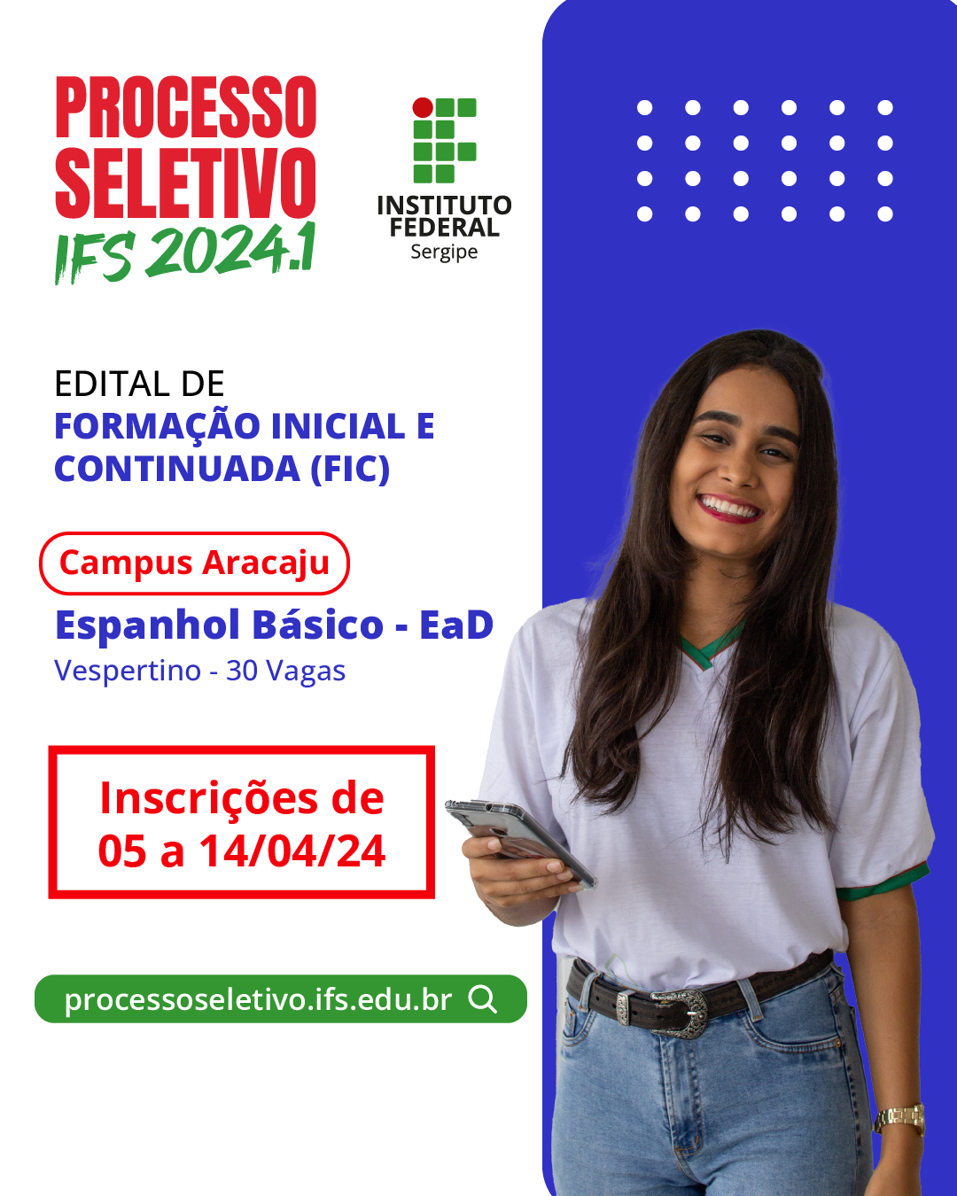 O Instituto Federal de Sergipe inicia nesta sexta-feira (5), as inscrições para o curso gratuito de Espanhol Básico, na modalidade a distância, ofertado pelo Campus Aracaju. Incluído como curso de formação inicial e continuada (FIC), terá uma carga horária de 160 horas e as aulas iniciarão no mês de maio.