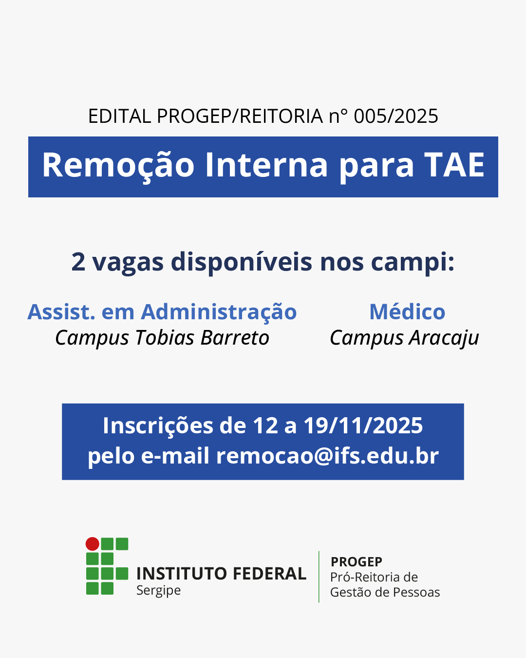 IFS abre processo seletivo de remoção interna para servidores técnico-administrativos