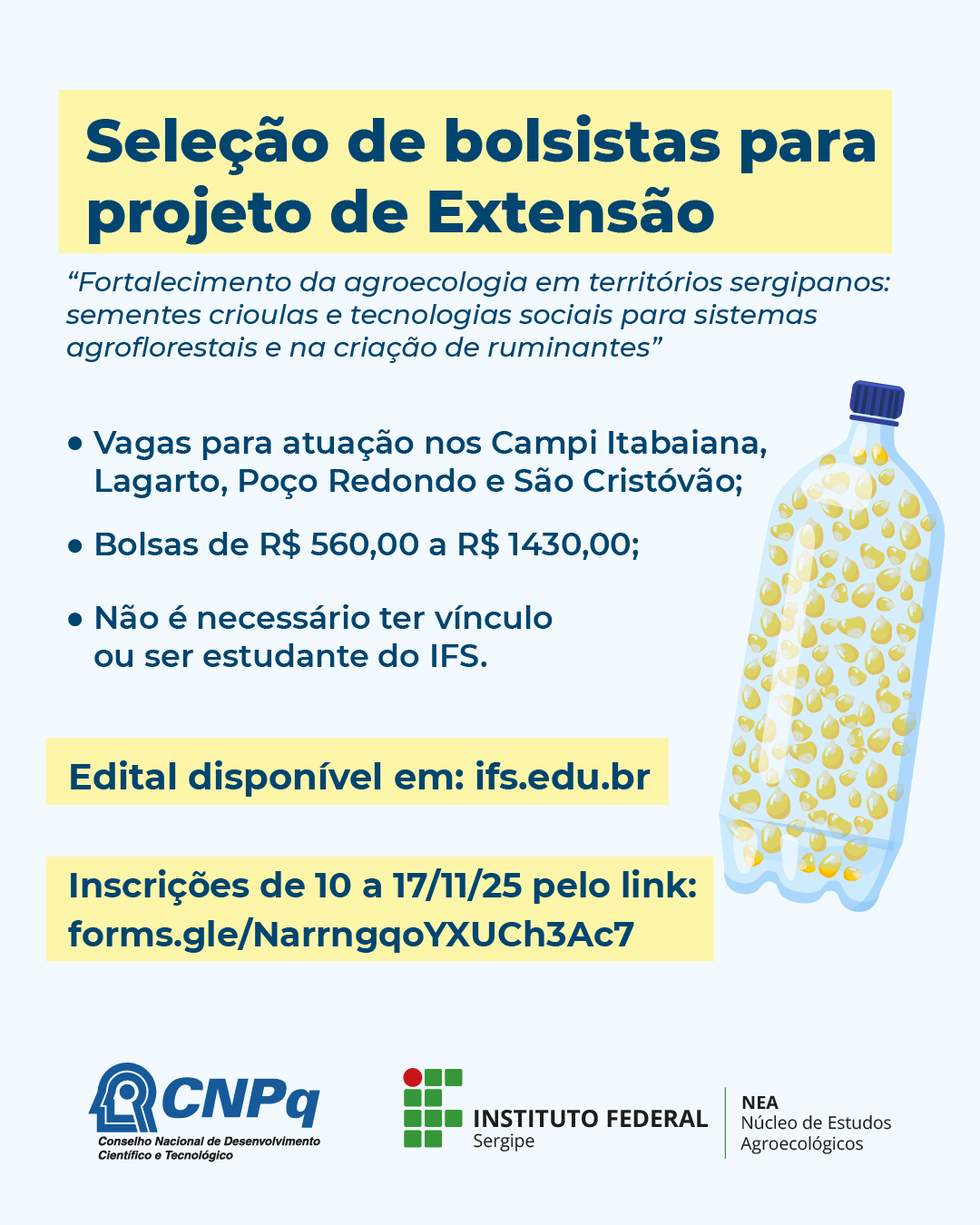 IFS abre seleção de bolsistas para projeto de agroecologia em Sergipe