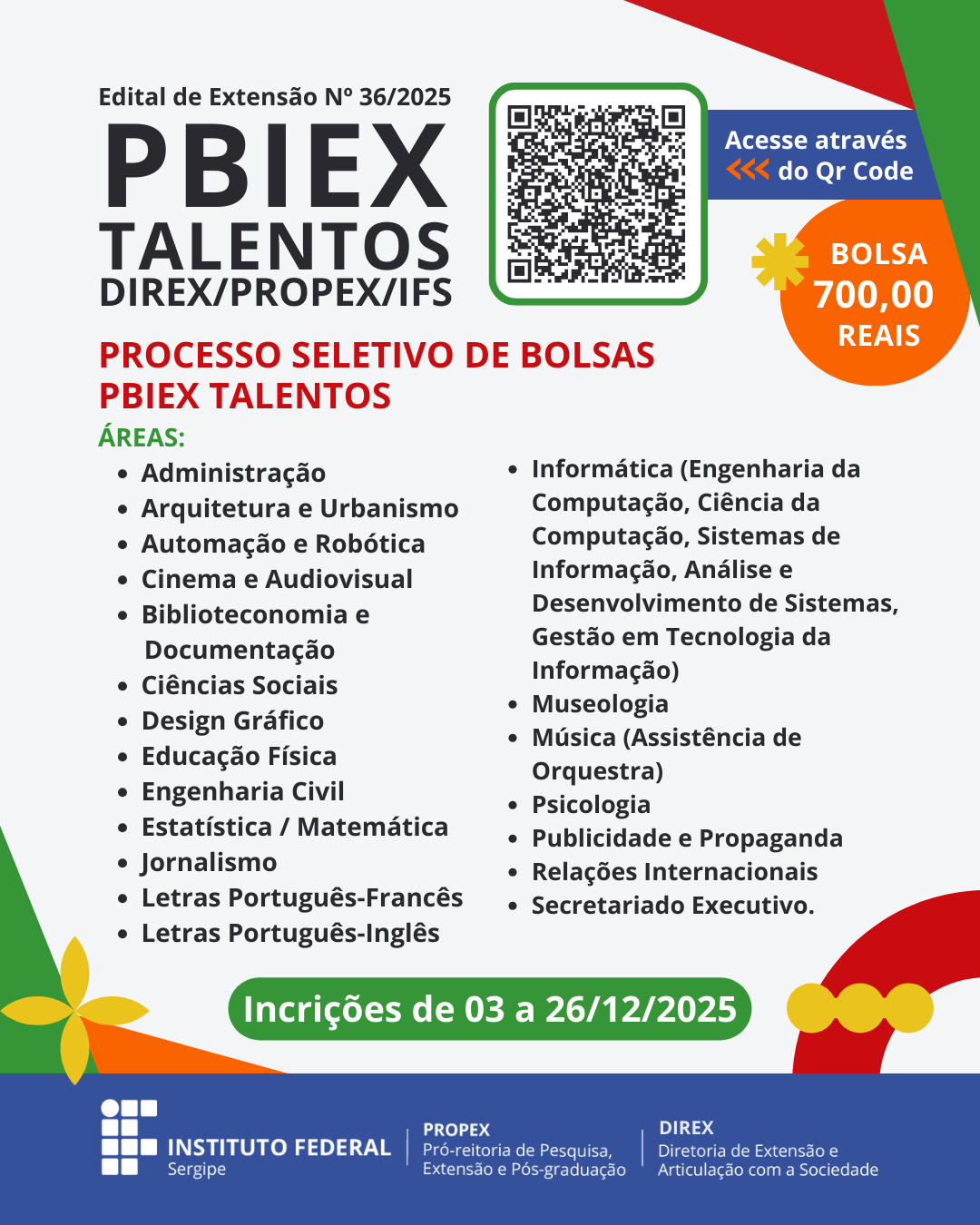 - (Extensão - Novo) *PIBEX - Edital 25/2025/DIREX/PROPEX – PROGRAMA INSTITUCIONAL DE BOLSAS DE INICIAÇÃO À EXTENSÃO