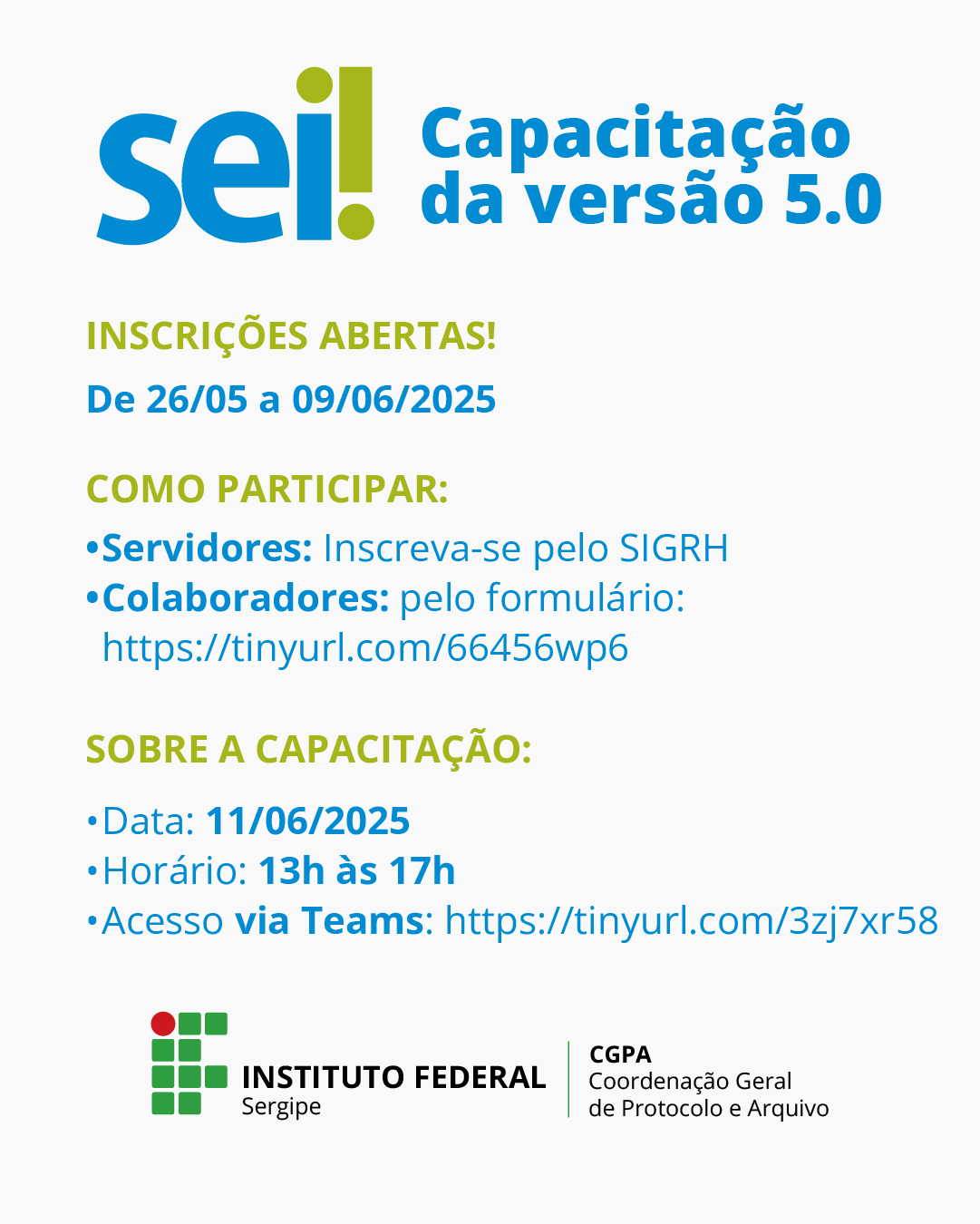 Inscrições são gratuitas e vão de 2 a 17 de junho para professores efetivos e ativos do Instituto O Instituto Federal de Sergipe (IFS) está com inscrições abertas, de 2 a 17...