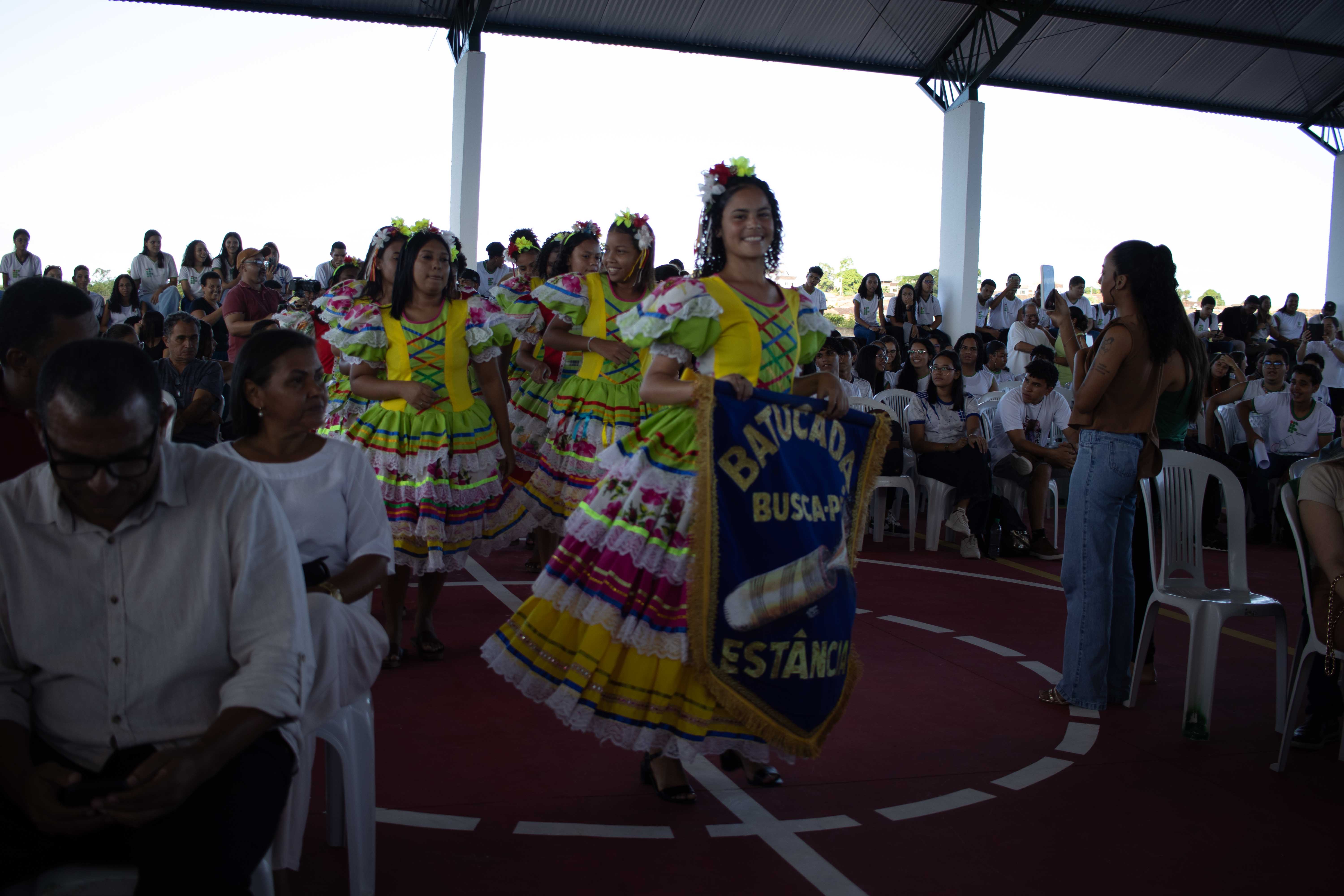 A solenidade iniciou com a apresentação do grupo folclórico Batucada Buscapé e da Associação Musical Lira Carlos Gomes, instituição artística que representa um dos mais importantes patrimônios estancianos. Logo depois foram convidados para compor a mesa a reitora do IFS, Ruth Sales Gama de Andrade; a diretora-geral do Campus Estância, Sônia Pinto de Albuquerque Melo, o pró-reitor de Pesquisa e Extensão, José Osman dos Santos, e o prefeito de Estância, André Graça, acompanhado da primeira-dama e secretária Municipal de Políticas Públicas para a Mulher, Cláudia Trindade, que representou o secretariado municipal.