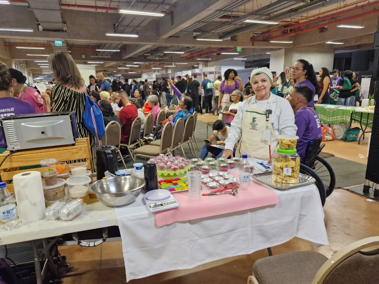 Durante o evento, o projeto ofereceu oficinas práticas em que os participantes aprenderam a preparar biscoitos e bolinhos saudáveis, com formulações simples e nutritivas. A atividade atendeu cerca de 60 pessoas, divididas em turmas de 20 participantes por oficina.