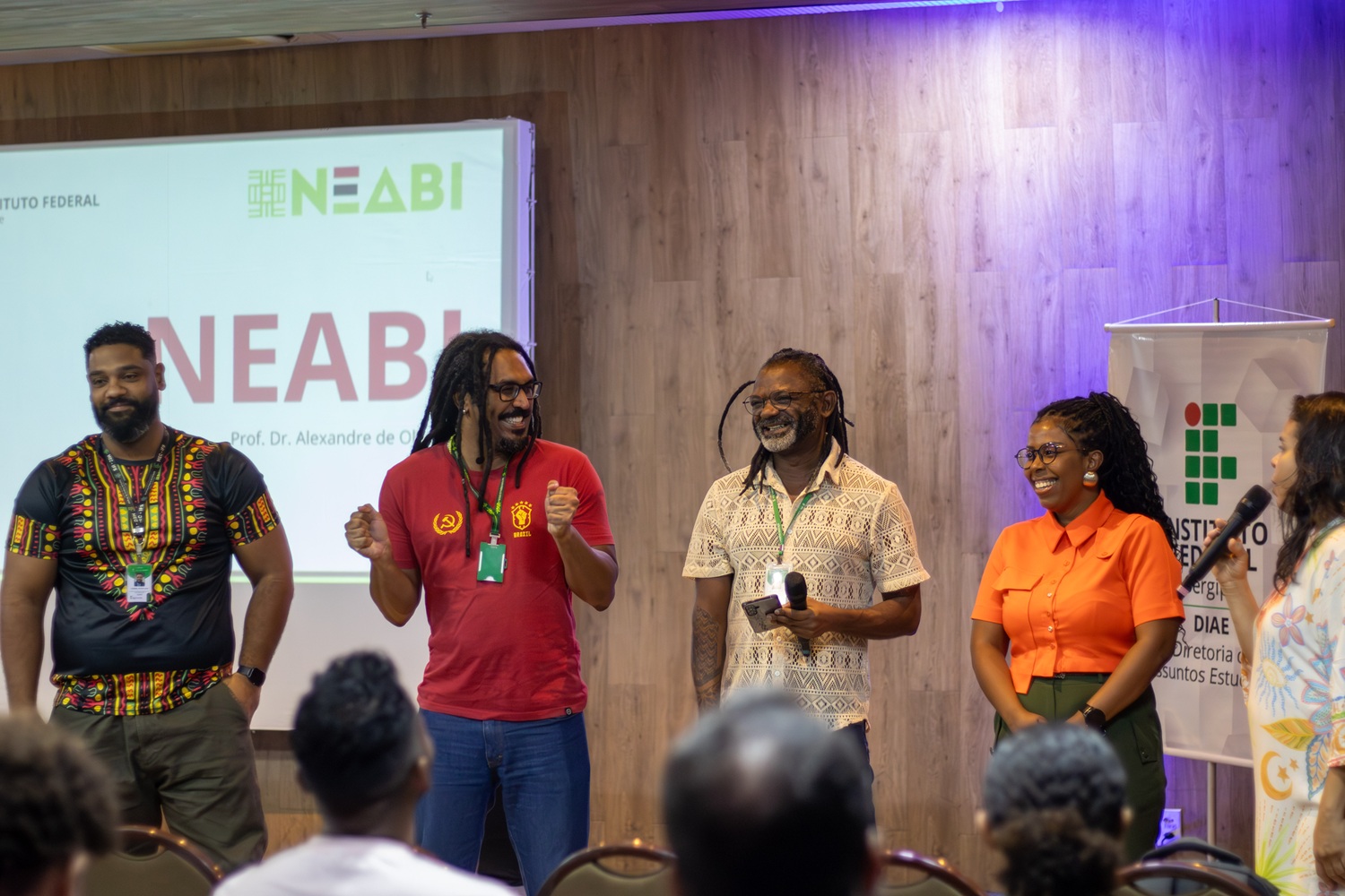 Atualmente, o Neabi tem grupos em todos os campi do IFS. Os coordenadores locais presentes reforçaram o convite aos participantes da JAE. “O intuito de estarmos aqui hoje na Jornada é lembrar que o Neabi é um espaço de acolhimento e letramento e que pessoas não negras também são bem-vindas. Nós acreditamos que é na diferença que a gente cresce”, enfatizou a professora Eline Santos.