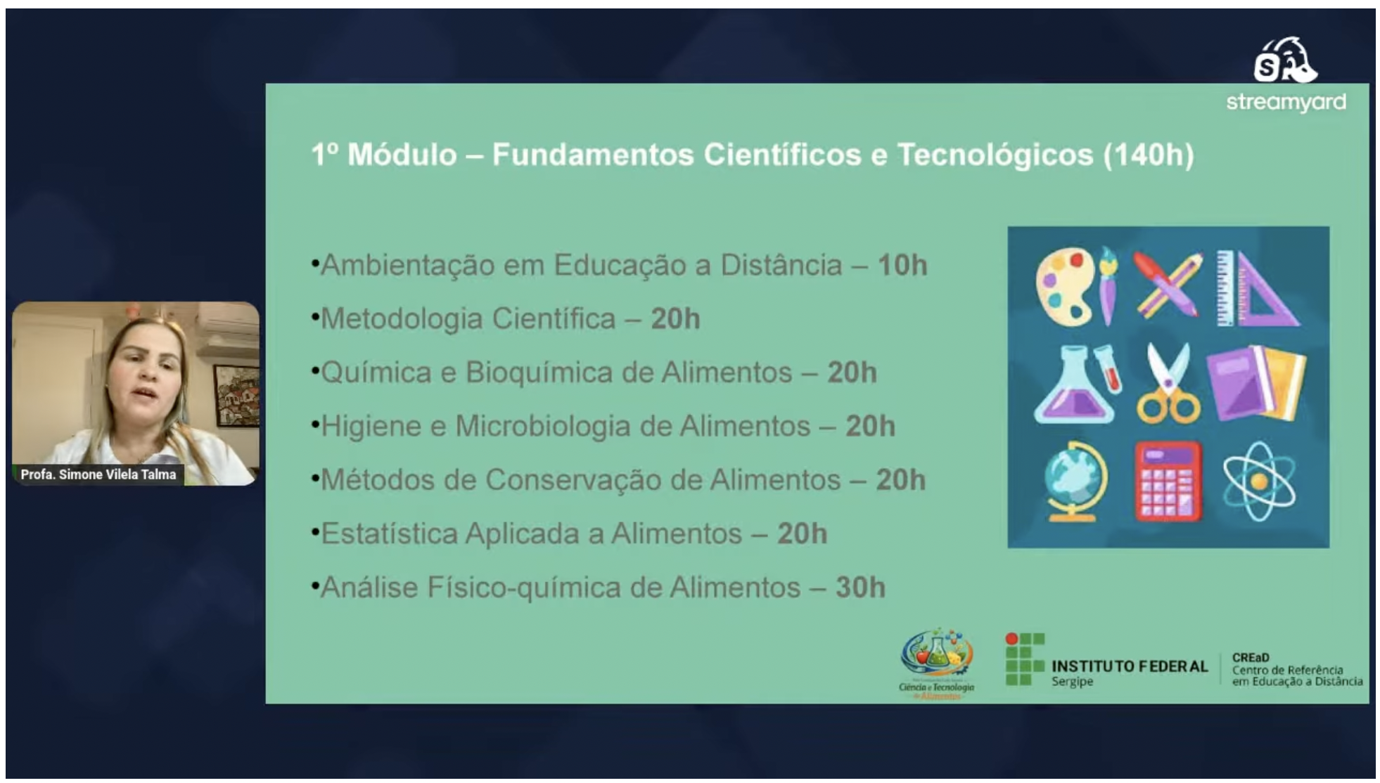 O Instituto Federal de Sergipe realizou, no dia 8 de abril, às 19h, a aula inaugural do curso de Especialização Lato Sensu em Ciência e Tecnologia de Alimentos na modalidade a distância (EaD). O evento foi transmitido ao vivo pelo YouTube e marcou o início das atividades acadêmicas da primeira turma do curso.