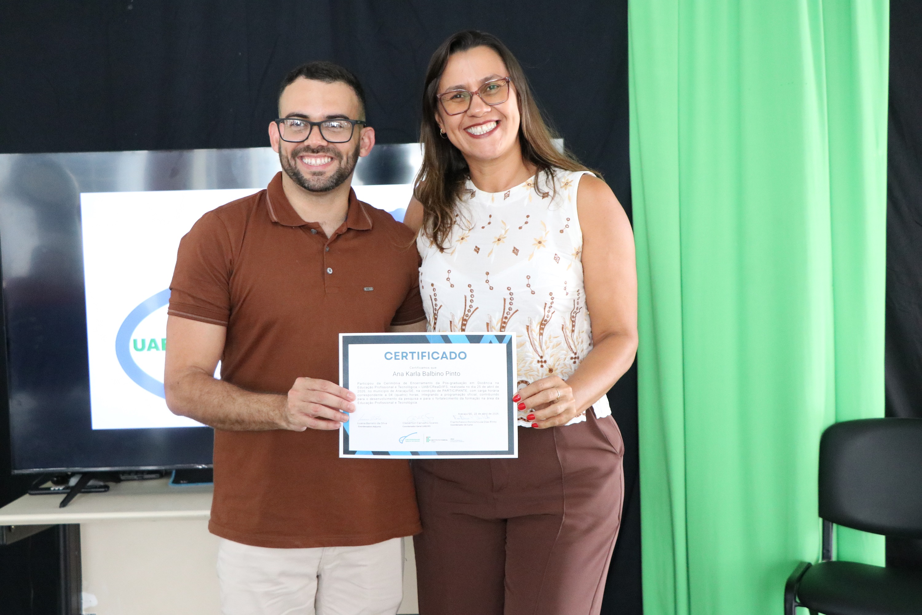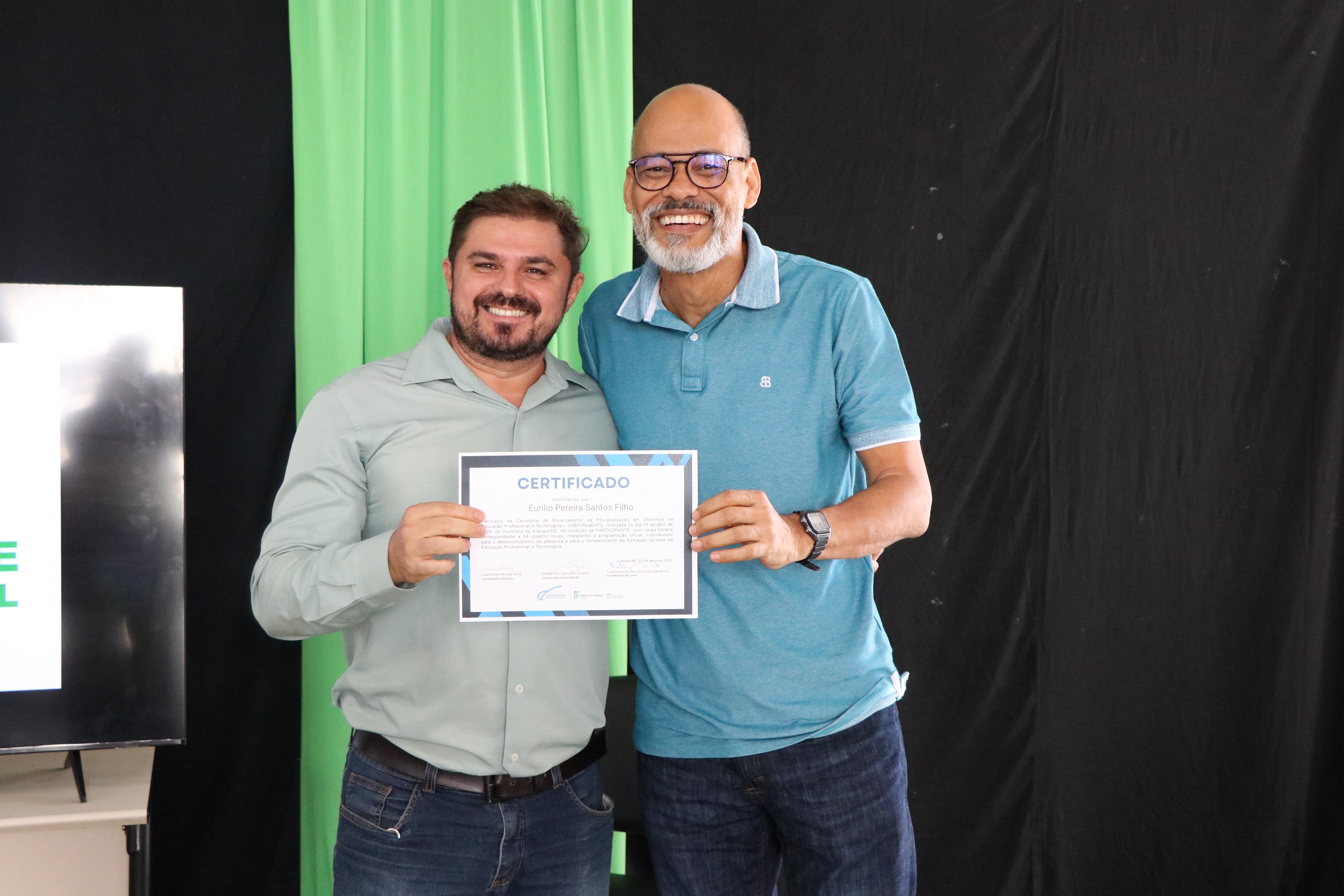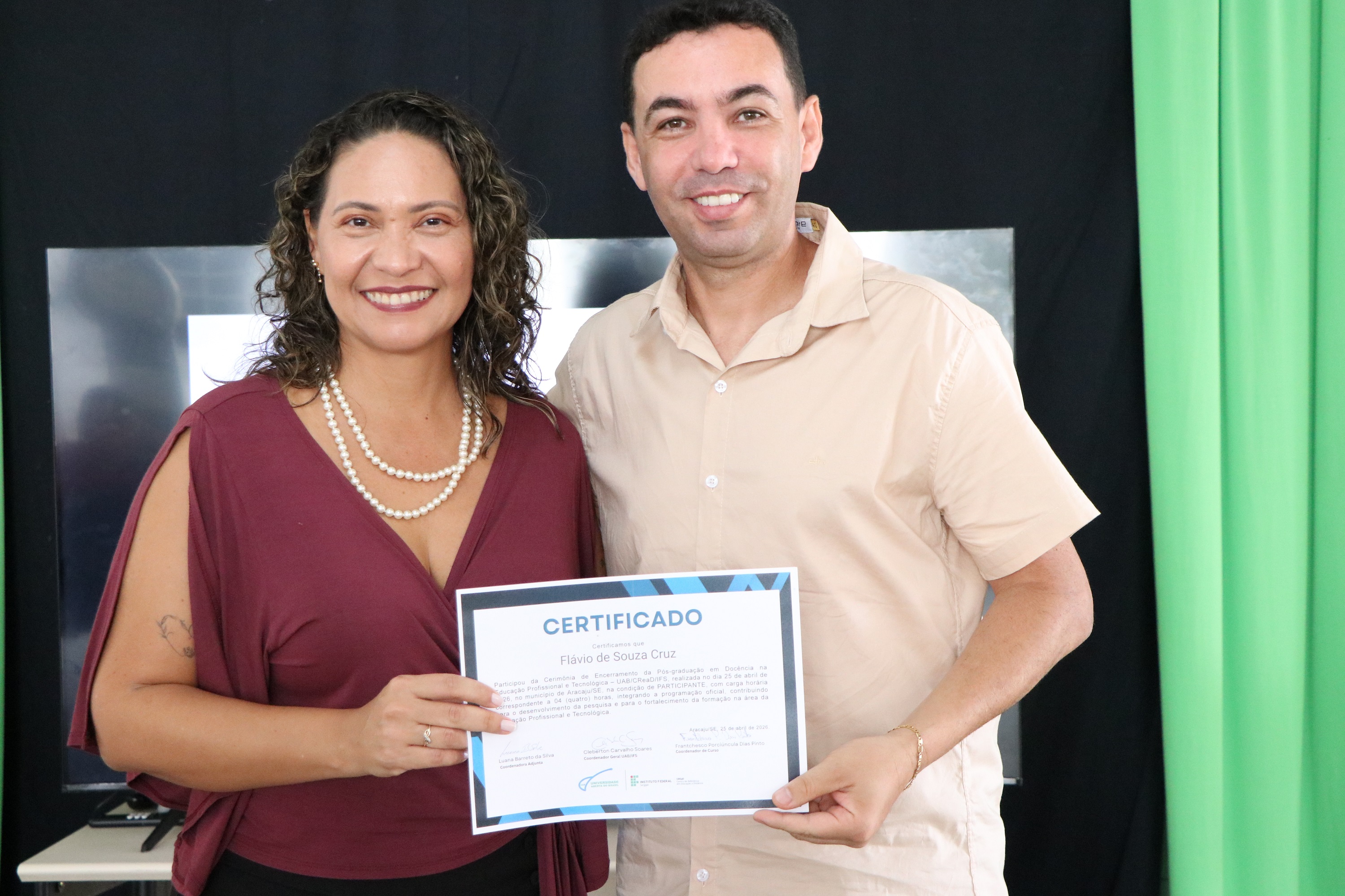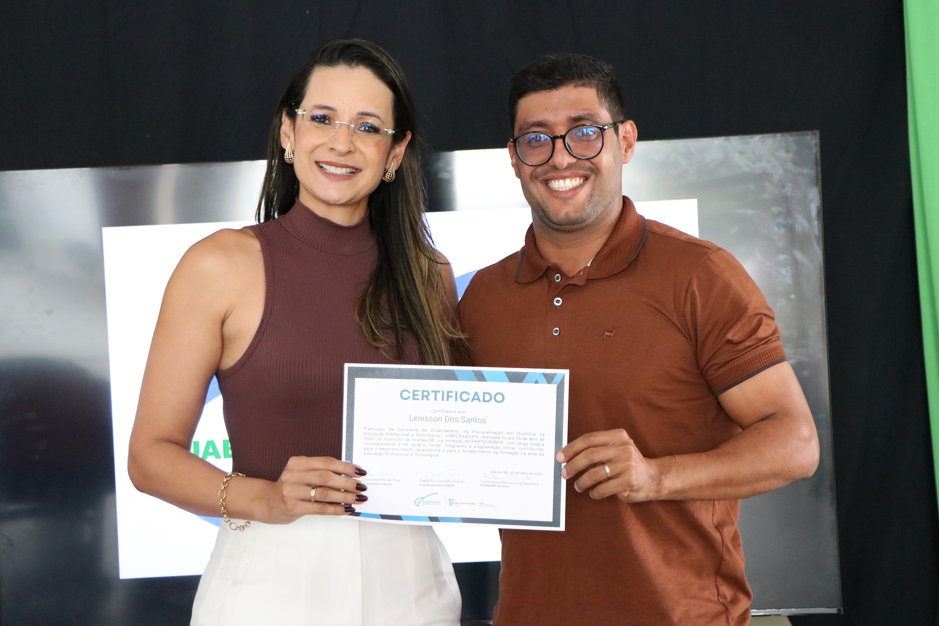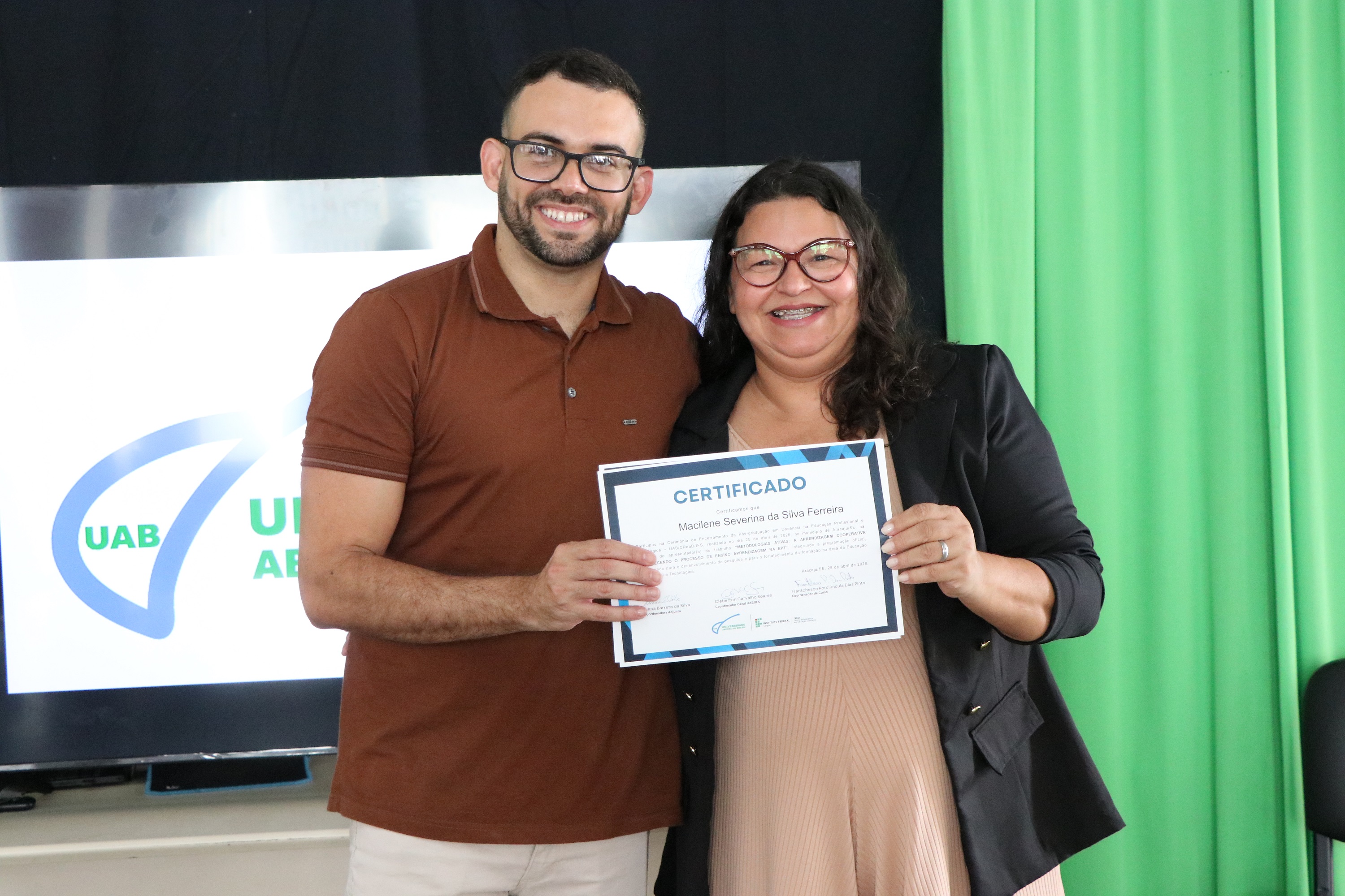 No total, 74 alunos concluíram o curso de especialização, que foi ofertado no período 2025-2026, em parceria com a Universidade Aberta do Brasil (UAB), pela primeira vez. De acordo com o professor Frantchesco Porciúncula, coordenador, o foco do curso é levar formação em Educação Profissional e Tecnológica para os profissionais que já atuam no IFS ou em outros espaços formais que ofertam cursos técnicos.