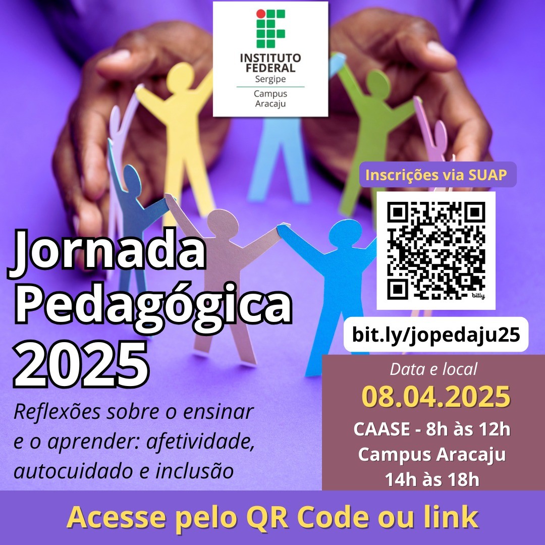 Com a proximidade do início das aulas do ano letivo 2025 no Instituto Federal de Sergipe, marcado para 9 de abril, a Direção-geral do IFS campus Aracaju, por meio da Diretoria de Ensino, promoverá Jornada Pedagógica com foco nas “reflexões sobre o ensinar e o aprender: afetividade, autocuidado e inclusão”, O evento ocorrerá no dia 8 de abril, das 8h às 12h, no auditório da Caixa de Assistência dos Advogados de Sergipe (CAASE), que fica Rua Tenente Martinho Garcez, 71, centro de Aracaju, e das 14h às18h, no Campus Aracaju.