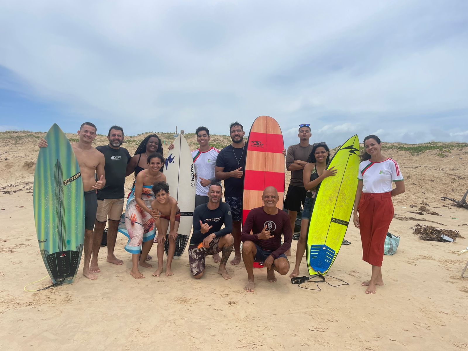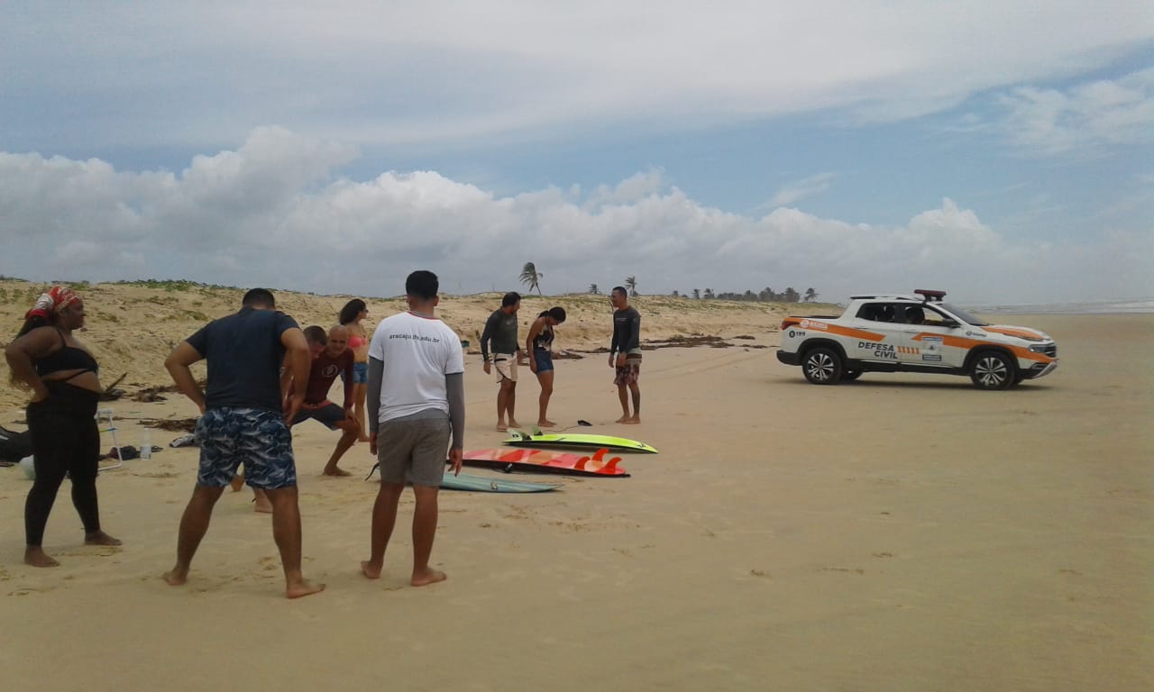 Encerrando a vivência, os participantes realizaram uma aula prática de surfe, sob supervisão da equipe de Guarda-Vidas da Prefeitura da Barra dos Coqueiros, consolidando a integração entre ciência, esporte, cultura e consciência ambiental.