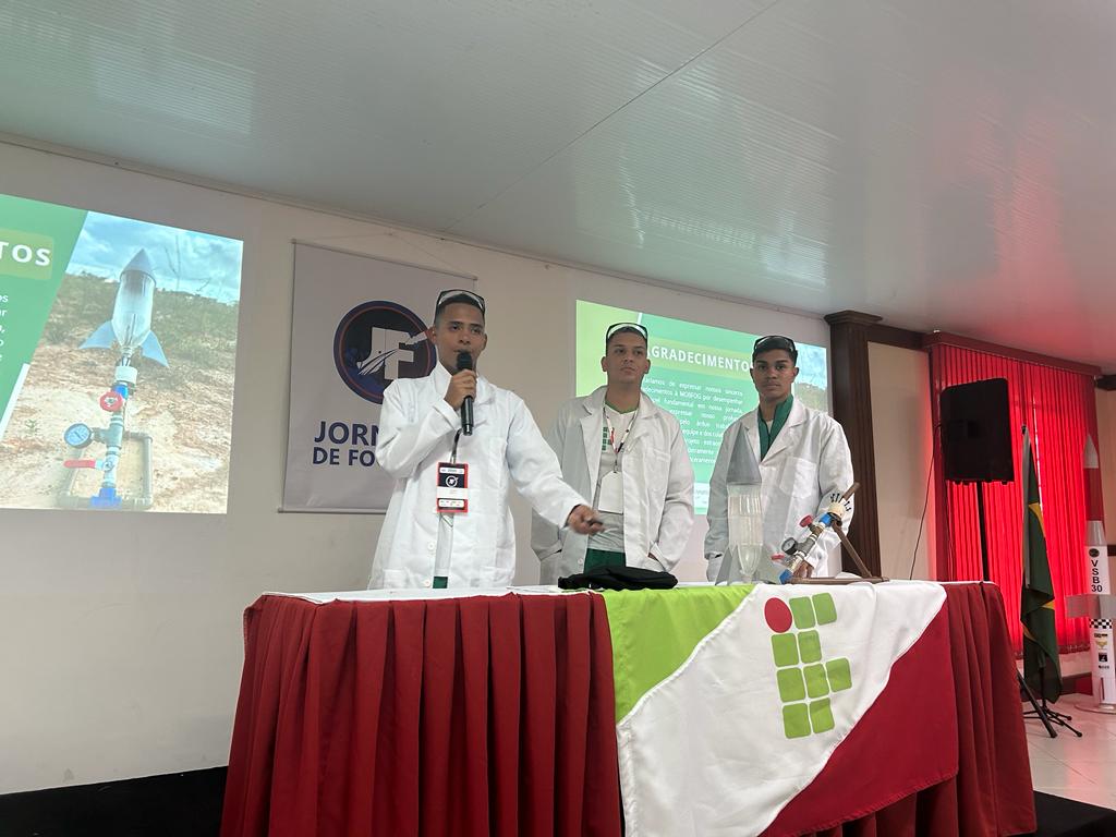 Danilo Rocha, Josan Matheus e Ronald Tavares foram classificados para a competição nacional, a Jornada de Foguetes, após o bom desempenho durante o lançamento de foguetes no campus, realizado no final do ano passado durante a Semana Nacional de Ciência e Tecnologia (SNCT). A equipe foi acompanhada pelo coordenador de Pesquisa e Extensão do IFS, professor Tiago Cordeiro, e montou uma estratégia combinada de aerodinâmica e uso de insumos eficientes que garantiu um lançamento superior a 200m.