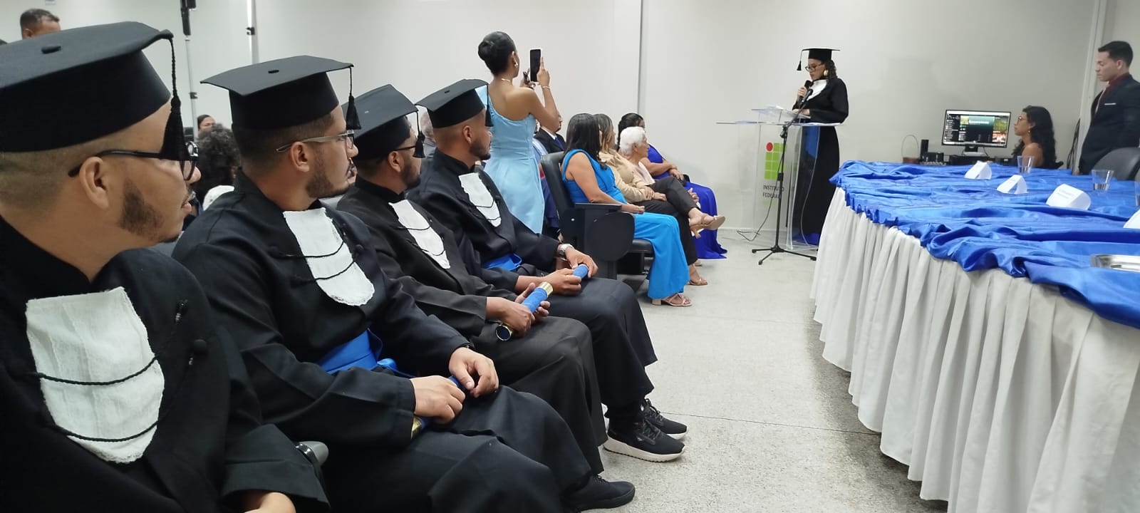 A cerimônia contou com a presença de autoridades, familiares, professores, servidores e amigos dos sete formandos, que escolheram para nomear a turma o primeiro coordenador do curso, professor Herbet Alves de Oliveira. Tamanha simbologia envolvendo as datas e as homenagens produziu momentos de muita emoção.