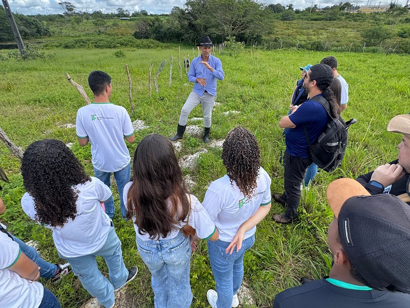No verão, quando o sol castiga a terra da região do Baixo São Francisco sergipano, Matheus Francisco costuma cruzar o pasto com uma mangueira em mãos para encher o velho tanque de cimento. Enquanto o pai trabalha longe, no Mato Grosso do Sul, é ele quem, ao lado da mãe, assume os cuidados com os bovinos da família: verifica cercas, trata dos cavalos arrendados, aplica remédios contra carrapatos. A vida rural não é novidade para ele, mas ver, ao vivo, um sistema agroecológico estruturado — onde até a comida dos ovinos é planejada com diversidade e equilíbrio — ampliou seu entendimento sobre práticas sustentáveis. Estudante do primeiro ano do curso técnico em Agropecuária do Instituto Federal de Sergipe, Campus Propriá, Matheus integrou o grupo que participou, no último dia 17, de uma visita técnica à Fazenda Baixinha, localizada no município sergipano de Graccho Cardoso.