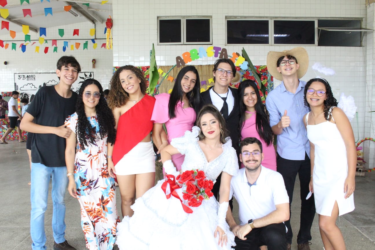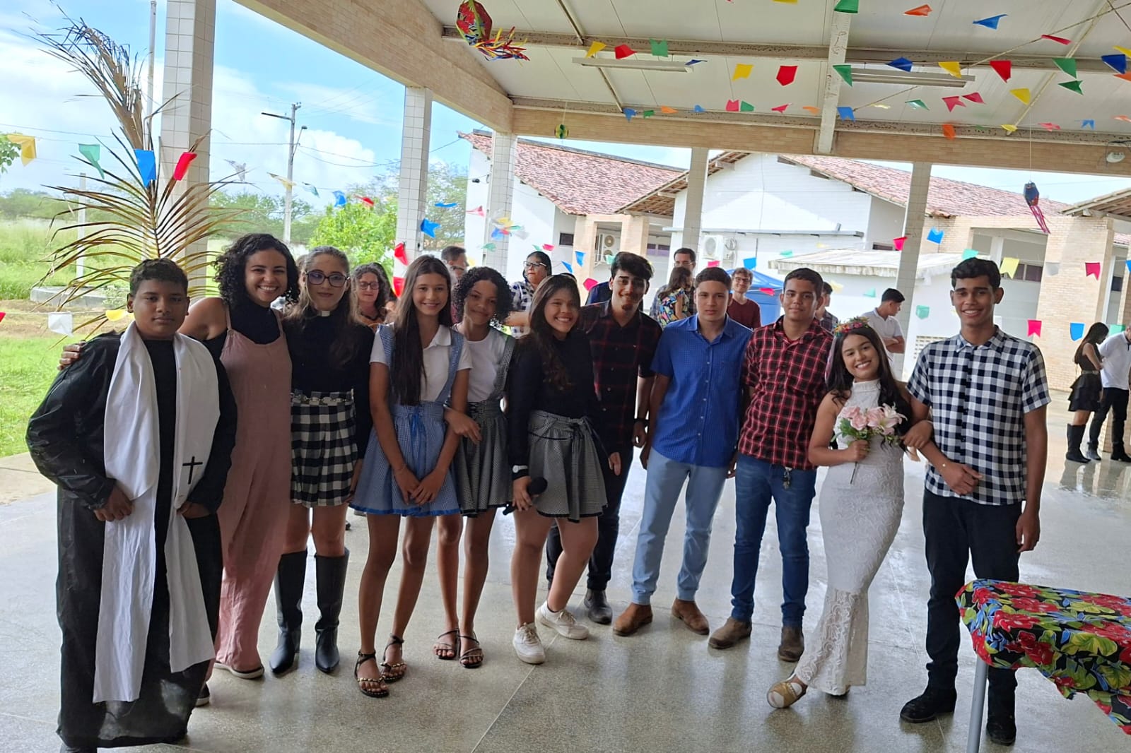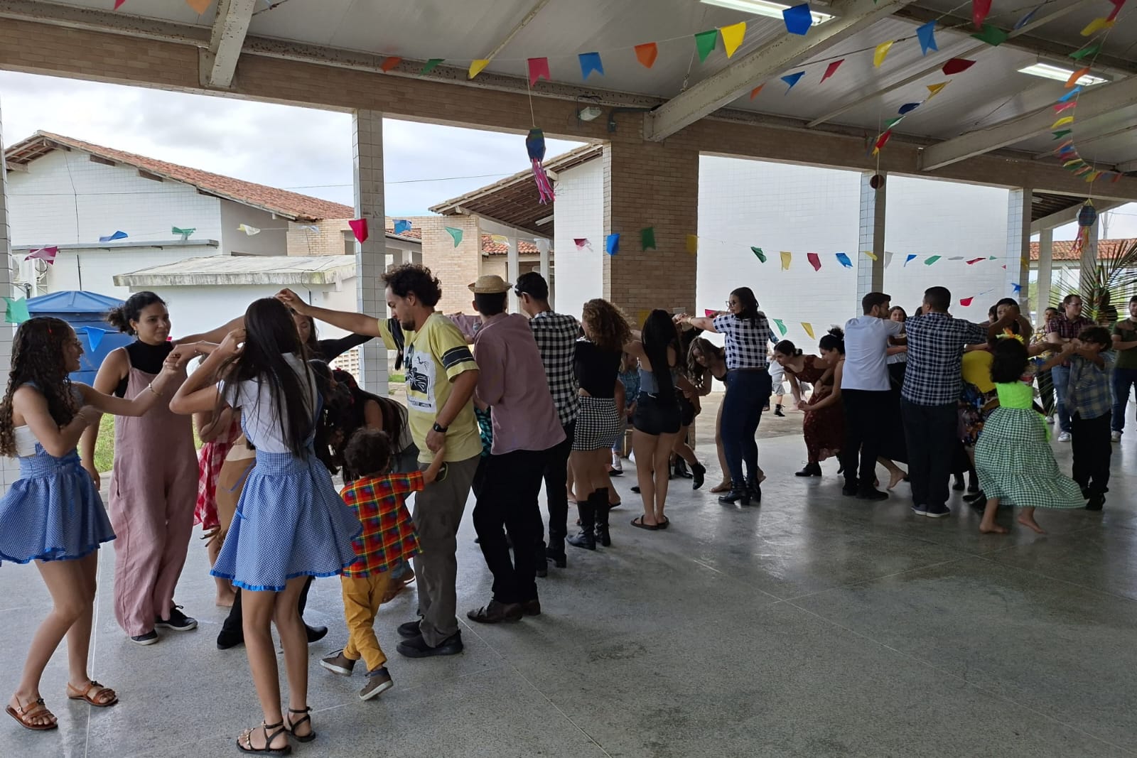 As atrações foram diversas e recheadas de simbolismo. Apresentações culturais organizadas pelas turmas incluíram recitação de cordéis e poemas, danças performáticas de forró em duplas e encenações de casamentos matutos. Nos intervalos, o tradicional “correio elegante” espalhou bilhetes de carinho, amizade e paquera, aquecendo os corações dos participantes.