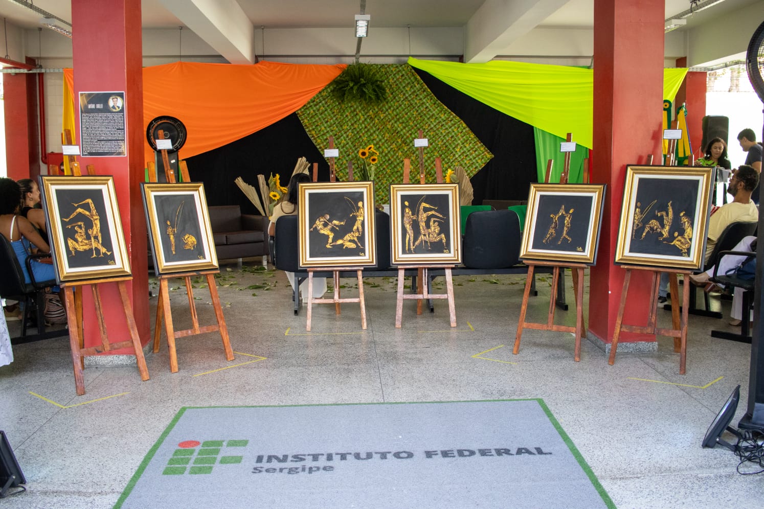 A oportunidade foi também para que os participantes pudessem prestigiar a exposição do artista sergipano e professor do IFS, Wécio Grillo: “Uma Olhar sobre a Performance da Capoeira”. A mostra traz uma releitura das obras de Carybé, reconhecido por retratar com maestria as expressões culturais afro-brasileiras. Os corpos dos capoeiristas, que em outro tempo foram perseguidos, quando a capoeira era considerada crime no Brasil, hoje emergem como símbolos de resistência, identidade e valorização cultural.