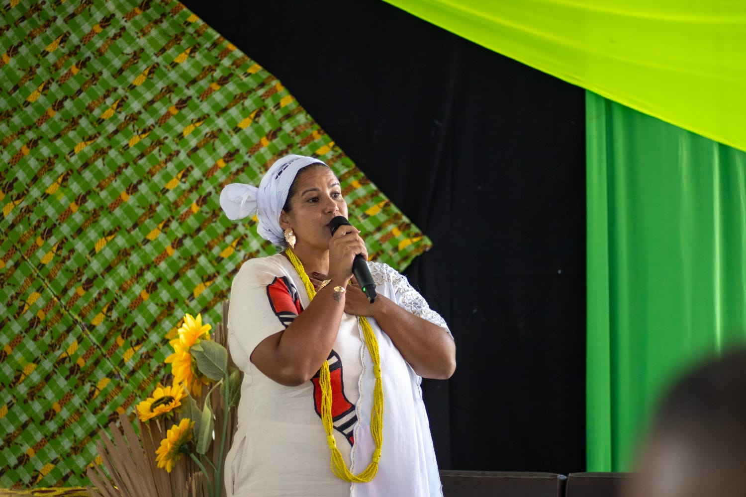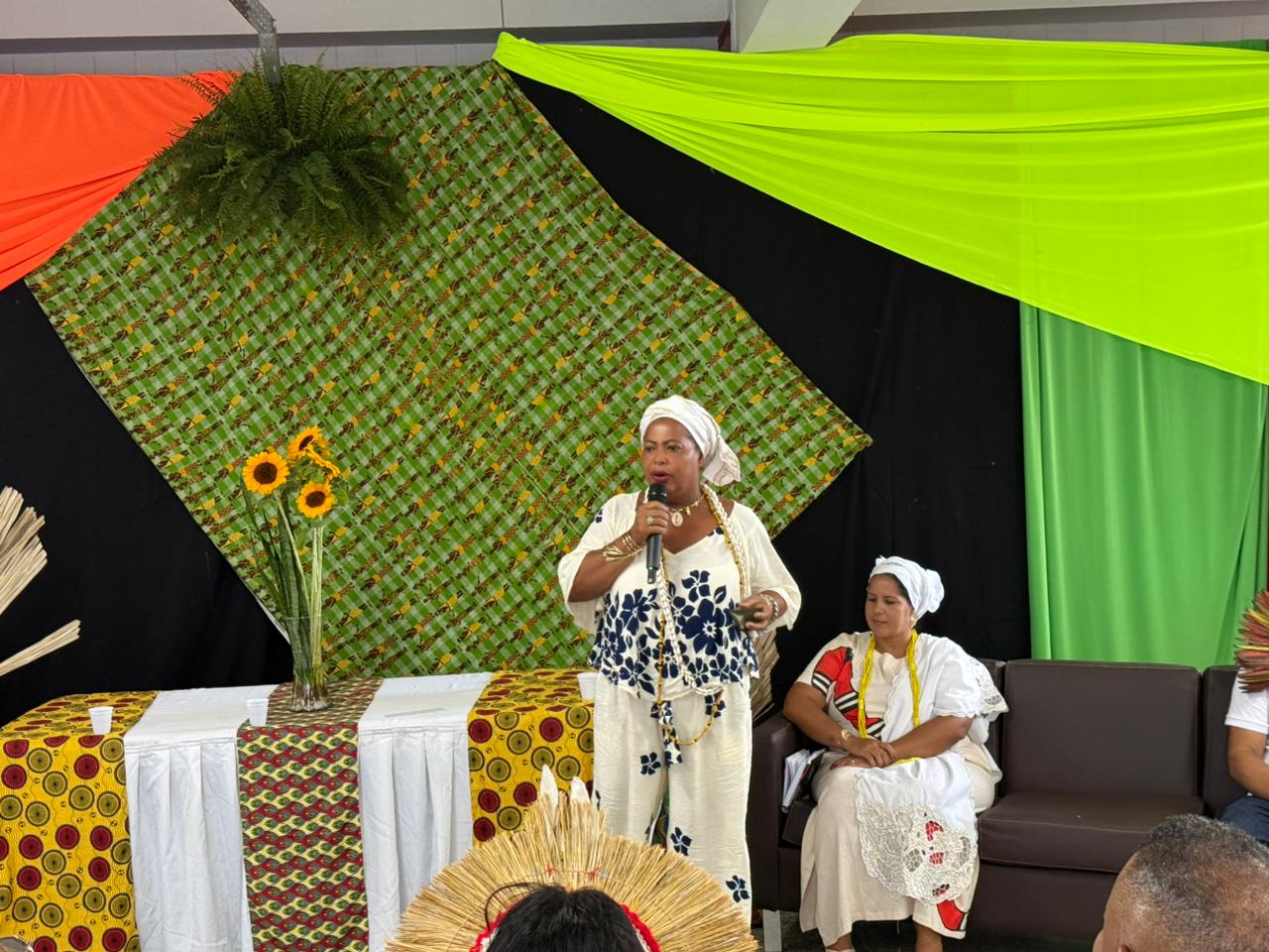 Referência na Pedagogia do Terreiro, a educadora Maria Balbina, Mam’etu Kafurengá, enfatizou o papel dos territórios tradicionais na produção de saberes. “O terreiro nunca foi, e nunca será, apenas um espaço de culto religioso. O terreiro é um espaço civilizatório. Ele é a nossa primeira escola, a nossa universidade ancestral. Lá dentro, o conhecimento é passado pela oralidade, pela vivência no dia a dia, pelo respeito profundo aos mais velhos e pela nossa relação de troca com a natureza. Na Pedagogia do Terreiro, a gente ensina na roda, onde todo mundo consegue se olhar nos olhos e o aprender é sempre um fazer junto”, diz.