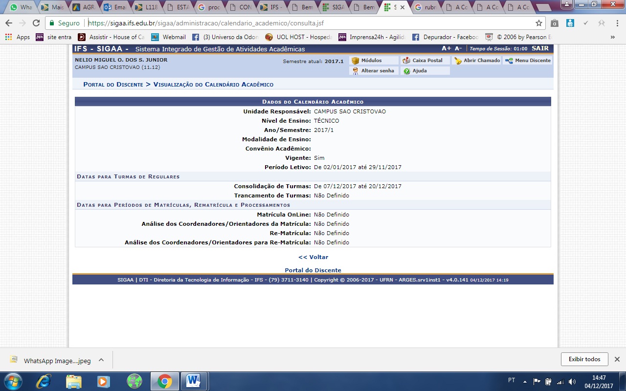 14/12/2017 - Sala de realização das eleições - Campus Aracaju