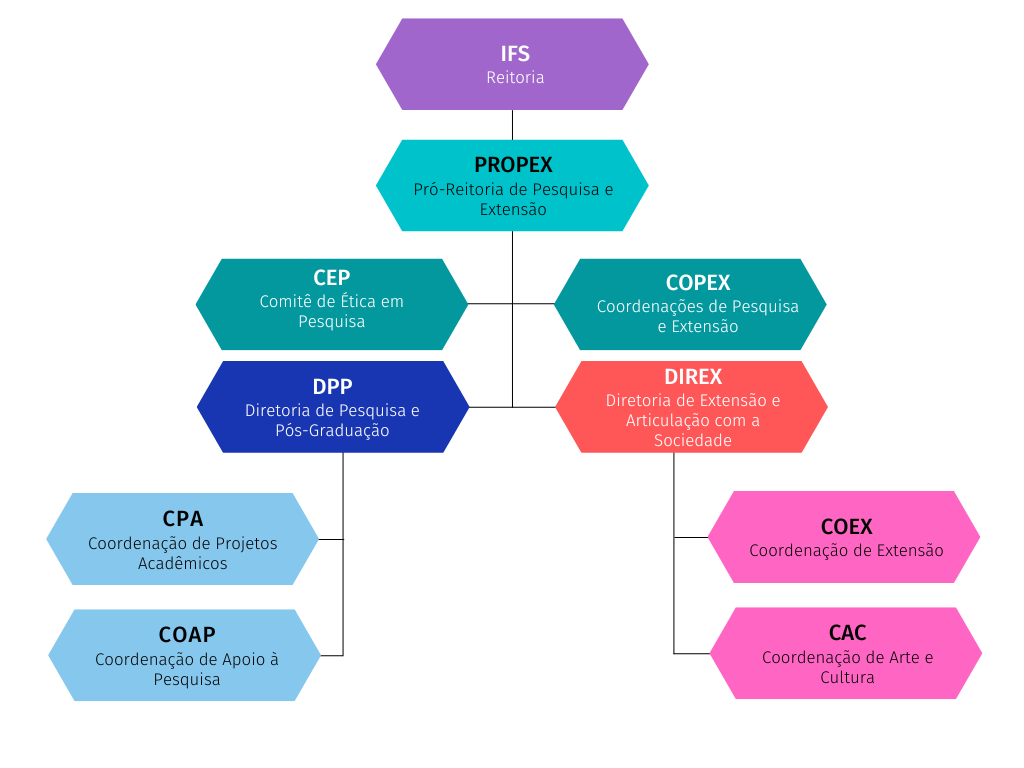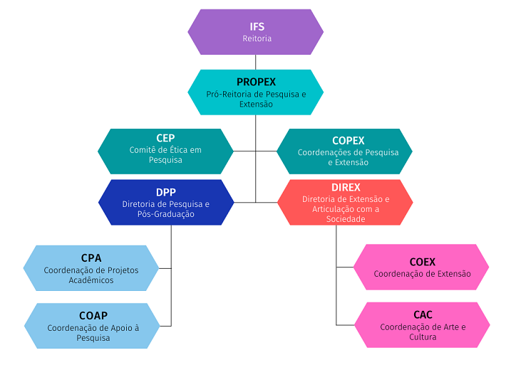 A Pró-Reitoria de Pesquisa e Extensão, dirigida por um Pró-Reitor nomeado pelo Reitor, é o órgão executivo que planeja, coordena, fomenta, acompanha e avalia as atividades e políticas de pesquisa aplicada, pós-graduação, extensão, inovação tecnológica, relações com a sociedade e interação com o processo produtivo, articuladas ao ensino.