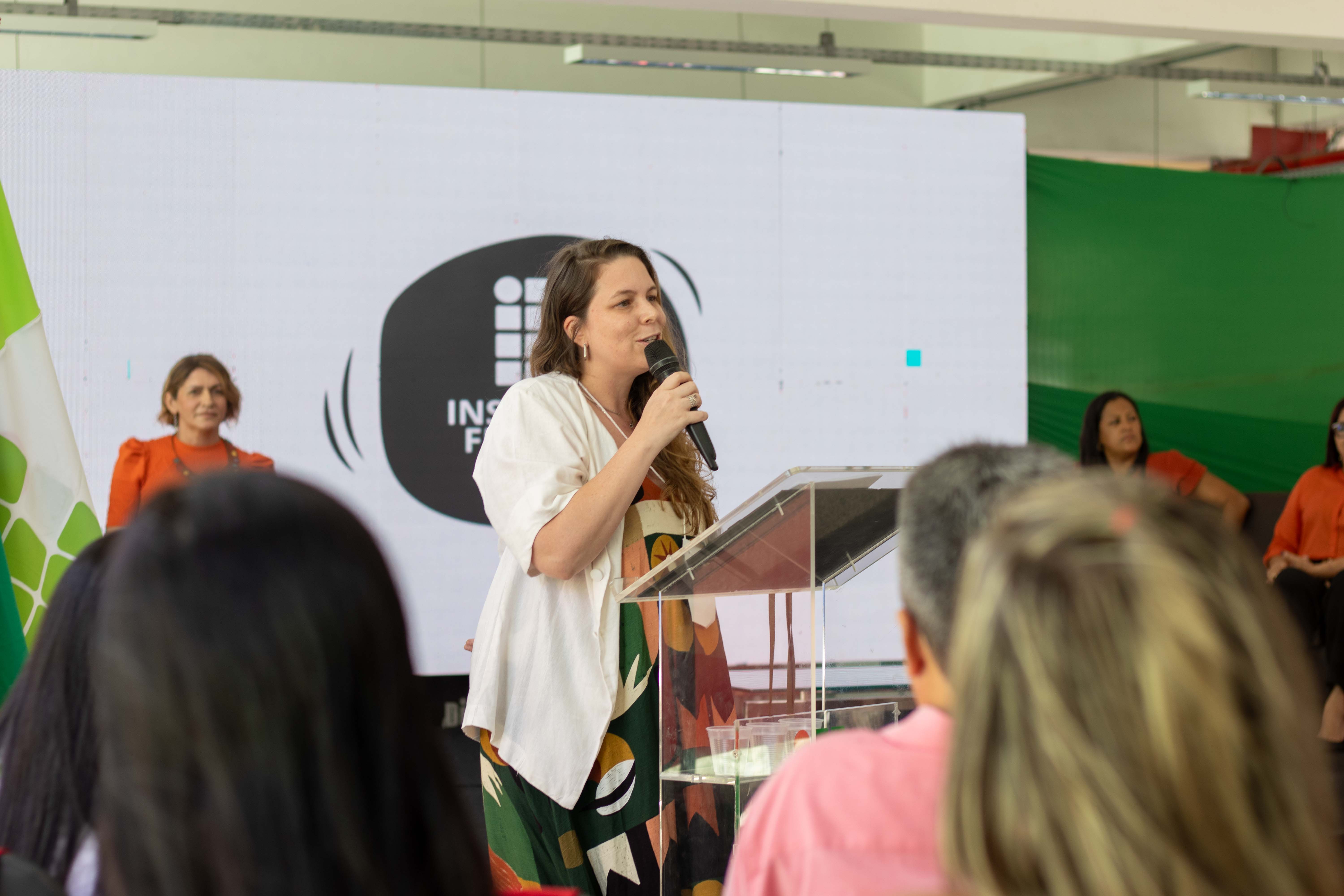 A reitora do Instituto Federal do Mato Grosso do Sul, Elaine Borges, trouxe em sua fala o diferencial dos IFs dentro da estrutura da educação pública e como o Mulheres Mil contribui para o alcance de tantas estudantes espalhadas em todo o estado. “Os Institutos Federais reconhecem o quanto é desafiador e recompensador manter um programa como o Mulheres Mil dentro de uma instituição pública que oferta diferentes modalidades de ensino”, evidenciou.