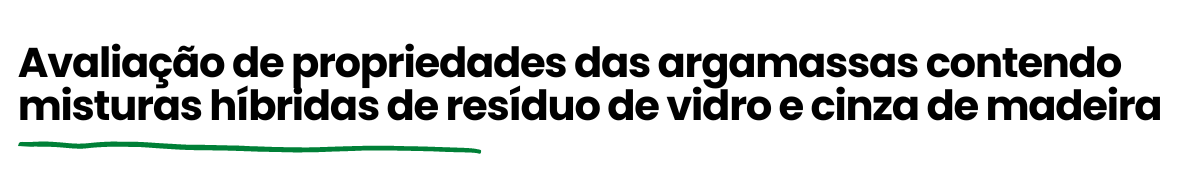 Este projeto tem por objetivo principal analisar a influência do uso de resíduo de lapidação de vidro, cinza de madeira e suas misturas híbridas nas propriedades da argamassa, ao substituir parcialmente o cimento Portland.