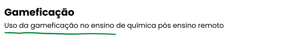 A aplicação da gameficação como metodologia visa minimizar os efeitos causados pelo ensino remoto no processo de ensino-aprendizagem dos conceitos básicos de química. Para isso, foi proposta a elaboração de jogos de tabuleiros com imagens, título e perguntas com relação direta com os conceitos do 9º ano do Ensino Fundamental. Com isso, espera-se que os conceitos de substâncias, misturas e elementos químicos sejam aperfeiçoados por meio da ludicidade e criatividade de cada criador-estudante.