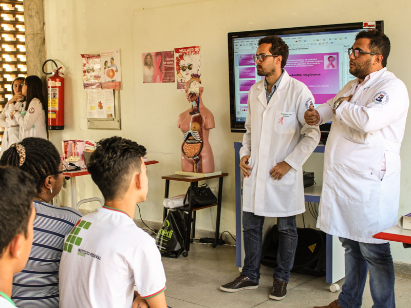 Outra ação do evento consistiu em palestras ministradas por alunos de Medicina do Campus Lagarto da Universidade Federal de Sergipe (UFS). “Esta parceria do IFS/Campus Lagarto com o curso de Medicina da UFS/Campus Lagarto já acontece há algum tempo e beneficia tanto os alunos do IFS, que obtém as informações corretas através de uma linguagem também jovem, como também é importante para os alunos da UFS, que colocam em prática o que aprendem em sala de aula”, analisa Vigildásio dos Santos Conceição, médico do IFS e professor da UFS.