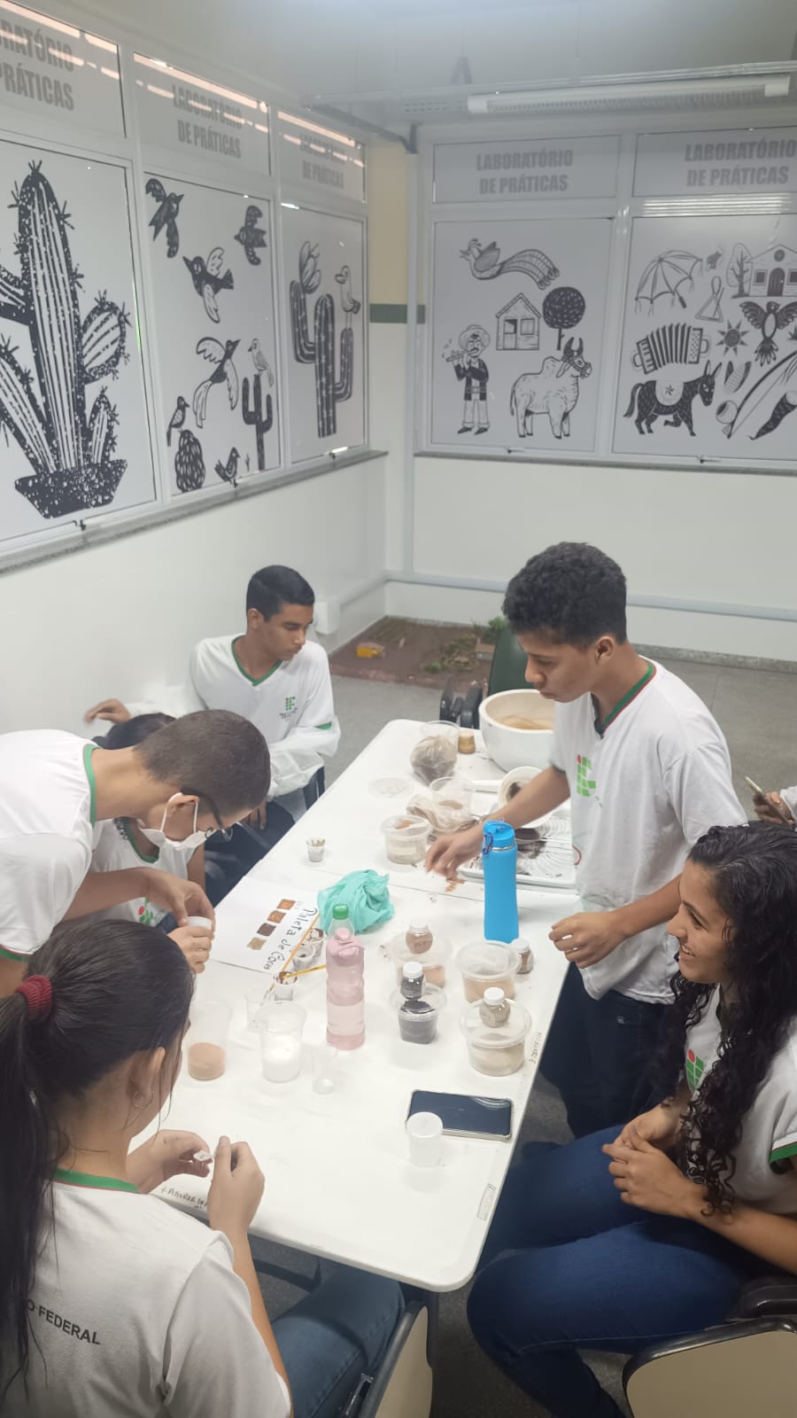 Com o avanço do trabalho, o projeto evoluiu naturalmente para uma oficina de tintas de solos, ministrada com apoio do professor de Artes do campus Poço Redondo, Lucas Wendel. Nessa etapa, elas ampliaram bastante a diversidade de solos avaliados. “Além dos solos do próprio campus, incluímos materiais de outras regiões do Sertão, trazidos inclusive pelos alunos, de vários pontos de Poço Redondo e proximidades, além de também os Luvissolos de Nossa Senhora da Glória, que são mais argilosos e geram tintas com tons alaranjados e avermelhados muito bonitos. Essa ampliação enriqueceu a oficina e permitiu comparar, na prática, o comportamento de solos com texturas diferentes”, disse Priscila.