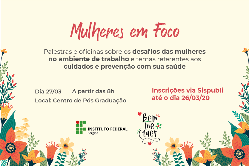 O evento “Mulheres em Foco” será voltado para o público feminino, já que no mês de março comemora-se o dia internacional da mulher. Serão abordados assuntos relevante para a mulher no tocante aos seus desafios no ambiente de trabalho e temas referentes aos cuidados e prevenção com sua saúde.