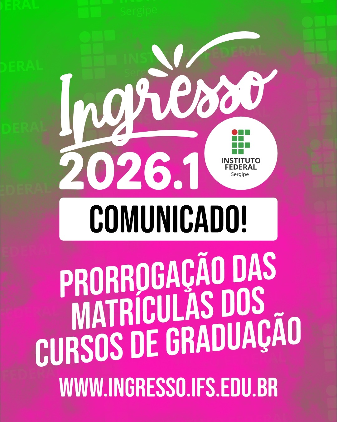 O Instituto Federal de Sergipe (IFS) informa que, após a publicação do resultado do Processo Seletivo dos Cursos de Graduação – Edital nº 01/2026/DGI/PROEN, foi identificada uma inconsistência técnica relacionada à importação e ao processamento das notas do Exame Nacional do Ensino Médio (ENEM), utilizadas como critério de classificação dos candidatos. A análise técnica...