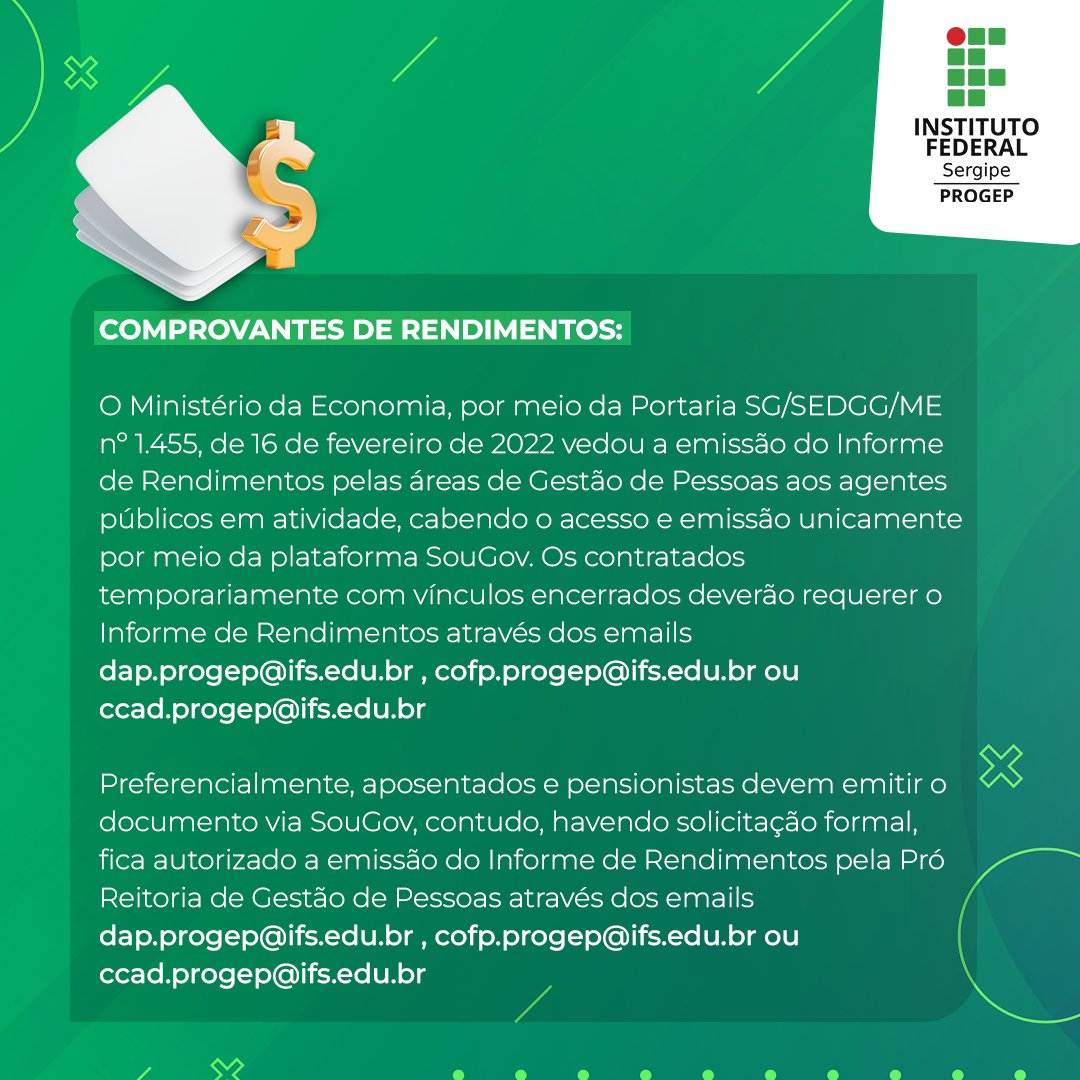 A Pró-Reitoria de Gestão de Pessoas – PROGEP, vinculada diretamente à Reitoria, é Órgão sistêmico, que coordena as políticas de pessoal e os programas de ingresso, capacitação e desenvolvimento profissional dos servidores do Instituto Federal de Sergipe, passando a disponibilizar por meio deste hotsite as informações e os dados de interesses dos servidores ativos, aposentados, pensionistas e da comunidade em geral.