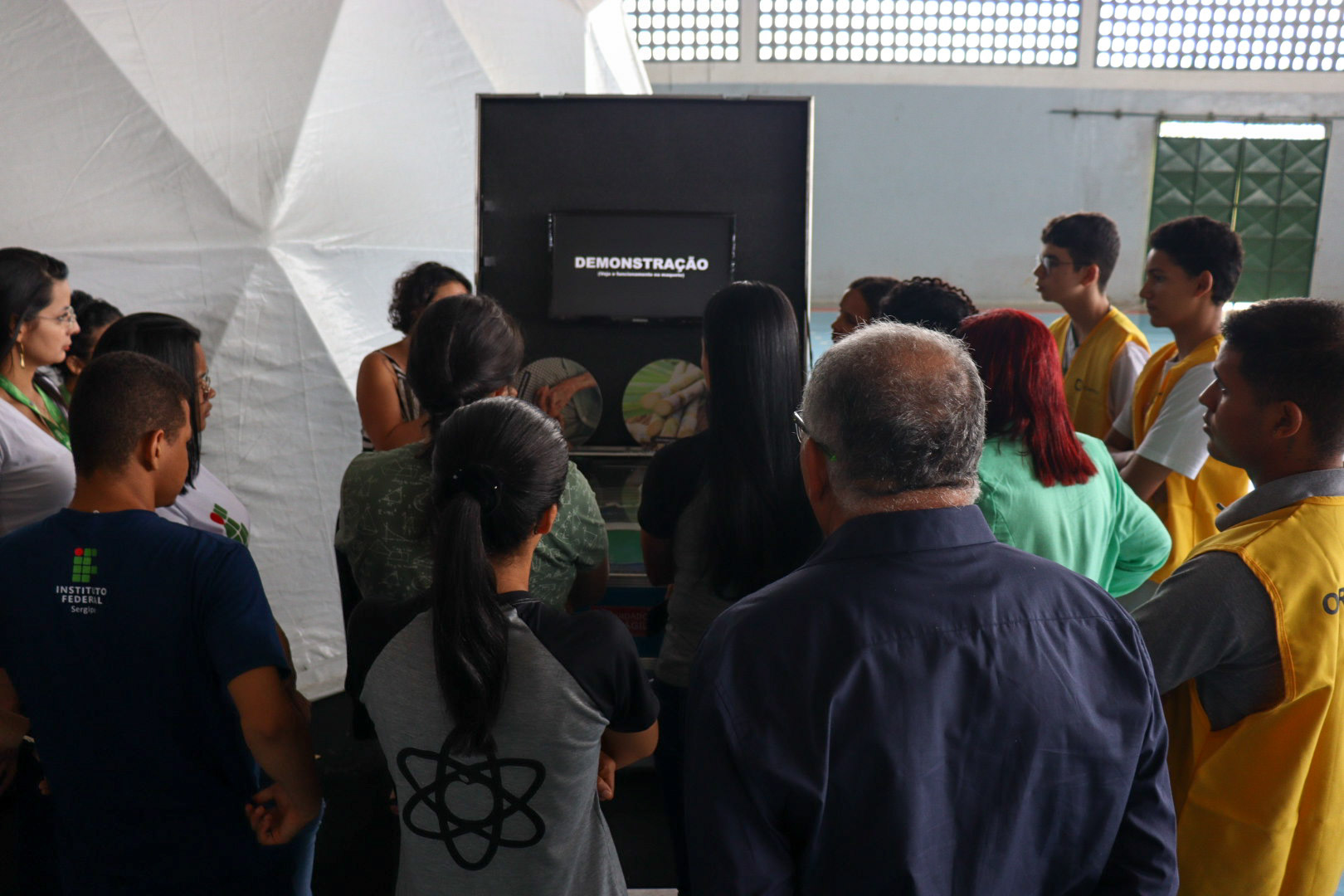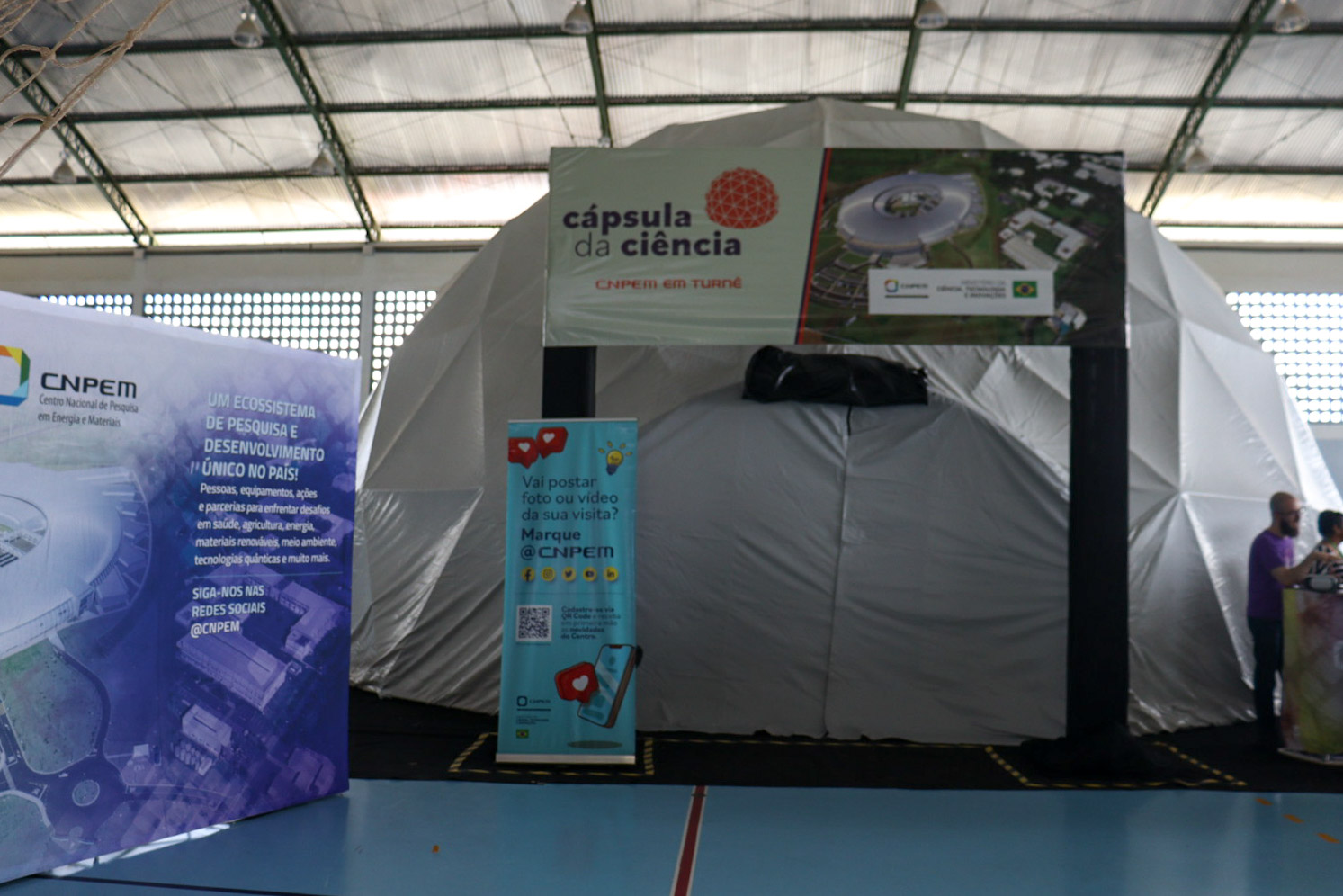 Em Lagarto, o projeto apresenta um domo geodésico de 95m². “No domo mostramos um pouco do que a gente faz, que é um mergulho por essa escala dos átomos e das moléculas dos materiais, mostrando um pouco como essa investigação nessa escala, consegue-se resolver problemas muito importantes e concretos para a sociedade. Sejam nas áreas de agricultura; para desenvolvimento de medicamentos; para desenvolvimento de fertilizantes; paras as novas fontes de energia que vão ser mais amigáveis ao meio ambiente; para muitas áreas de pesquisa diferentes”, explicou Luciana Norinha, especialista em Comunicação da CNPEM e uma das organizadoras do projeto itinerante.