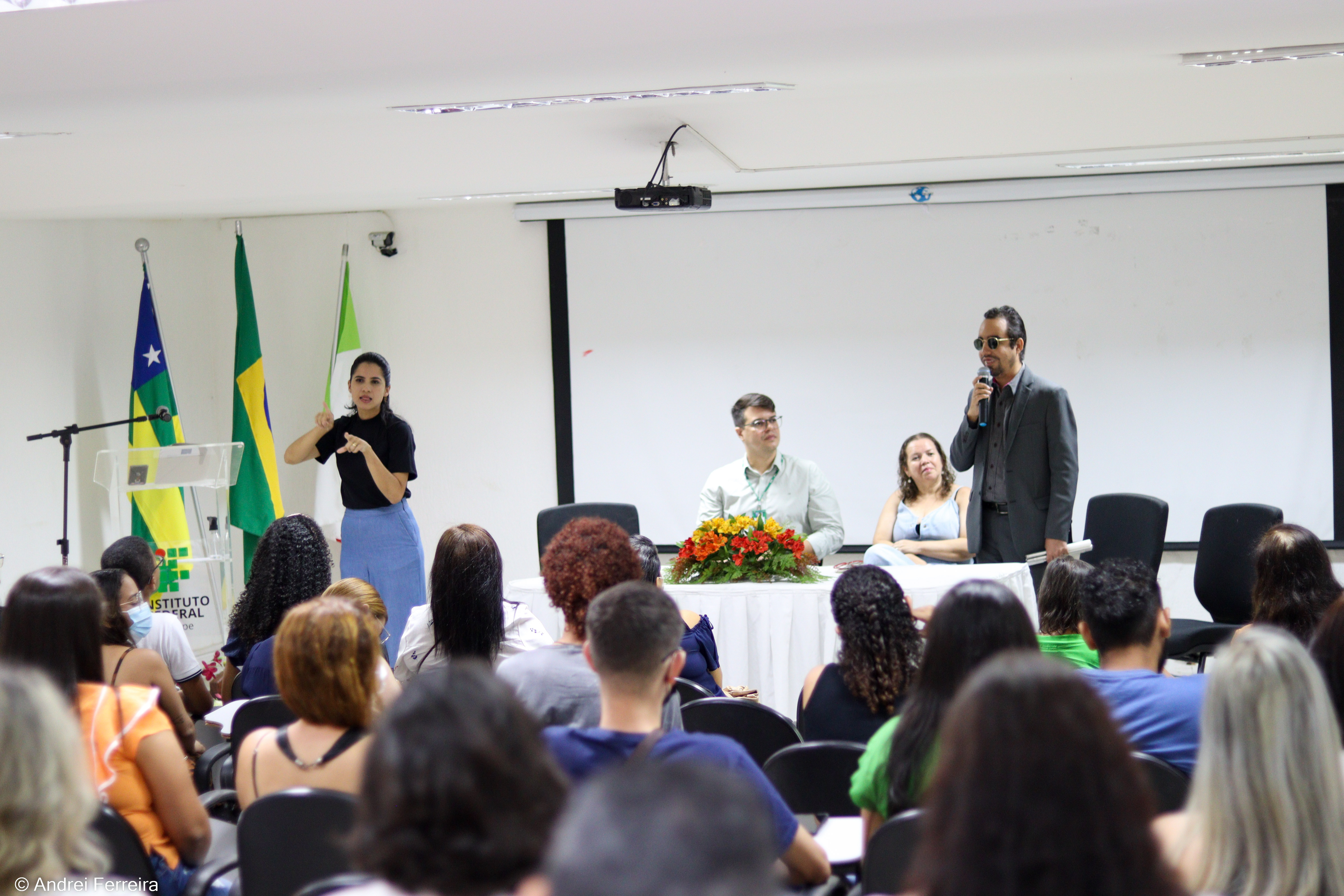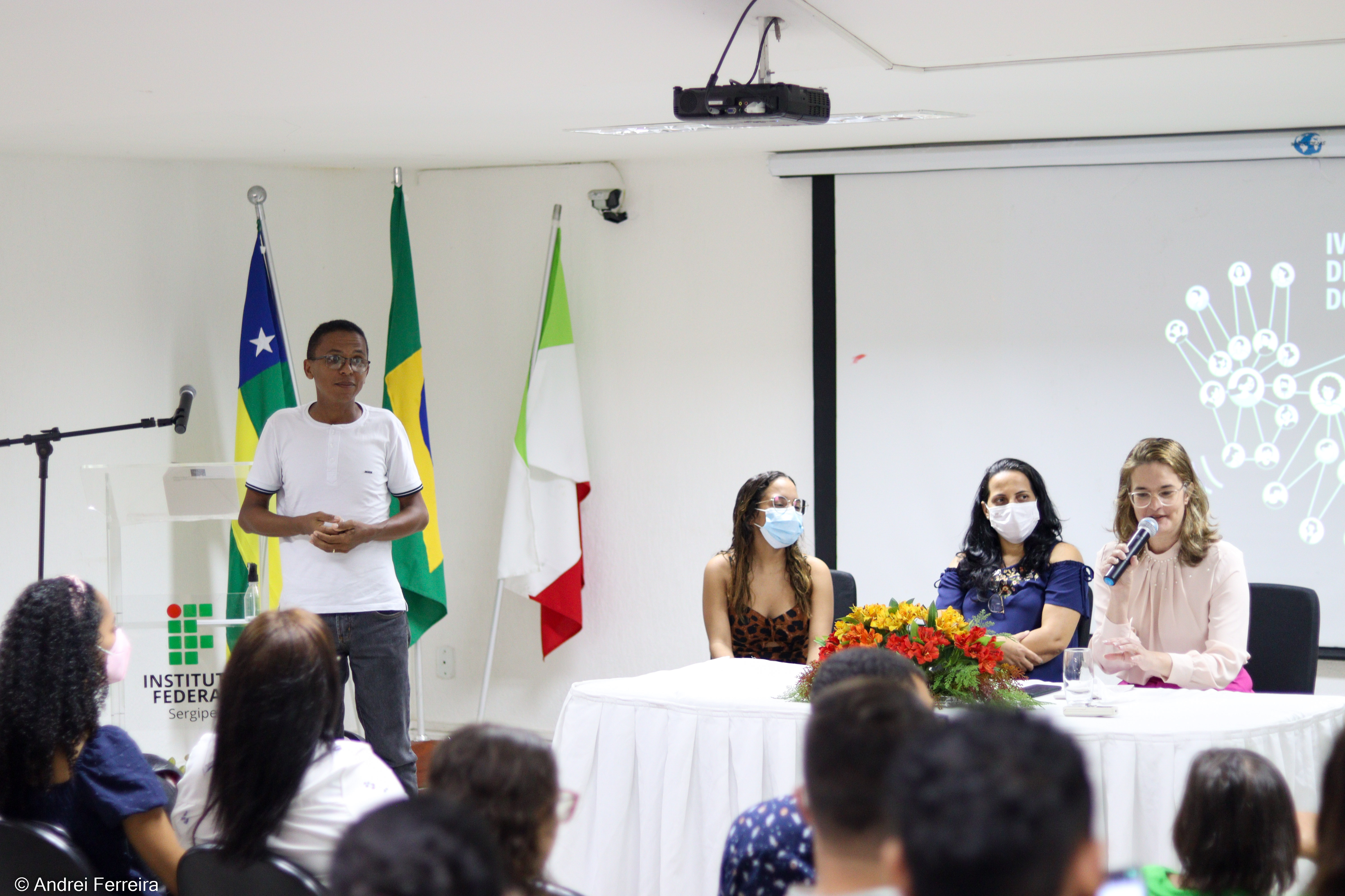 Compareceram à abertura do evento, o Professor Jaime Barros, representando a Reitora do IFS, professora Ruth Sales Gama; a professora Elza Ferreira Santos, em nome do Pró-reitor de Ensino, o professor Alysson Barreto, e a psicóloga Christianne Rocha Gomes, coordenadora do Núcleo de Acessibilidade e Educação Inclusiva (Naedi). Ainda na composição da mesa de abertura, estava Lucas Aribé, representante do Iluminar, instituto voltado à inclusão social de pessoas com deficiência e parceiro do IFS na realização dos encontros anteriores.