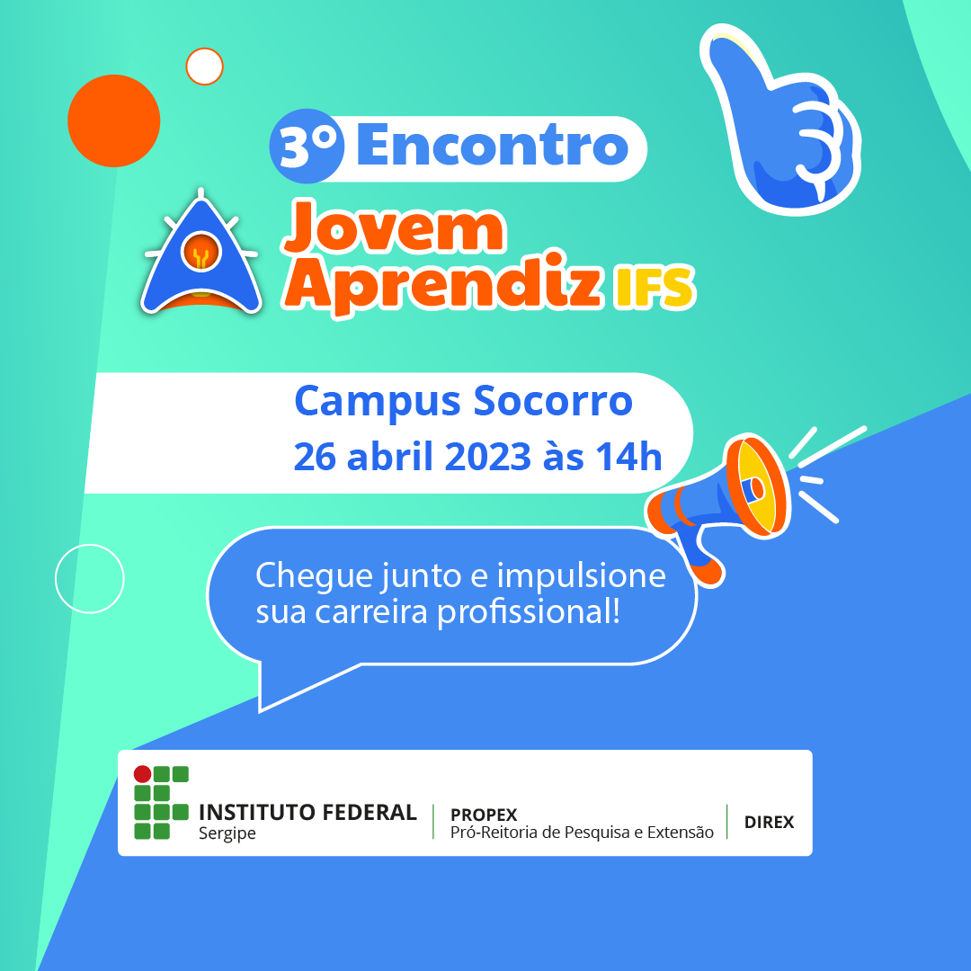 O Instituto Federal de Sergipe (IFS), por meio da Pró-reitoria de Pesquisa e Extensão (Propex) e da Diretoria de Extensão (Direx), realiza nesta quarta (26), no Campus Socorro, às 14h, o 3º Encontro de Jovens Aprendizes do IFS, o evento tem como objetivo divulgar o programa de aprendizagem e compartilhar experiências e conhecimentos entre os participantes, servidores e comunidade externa.