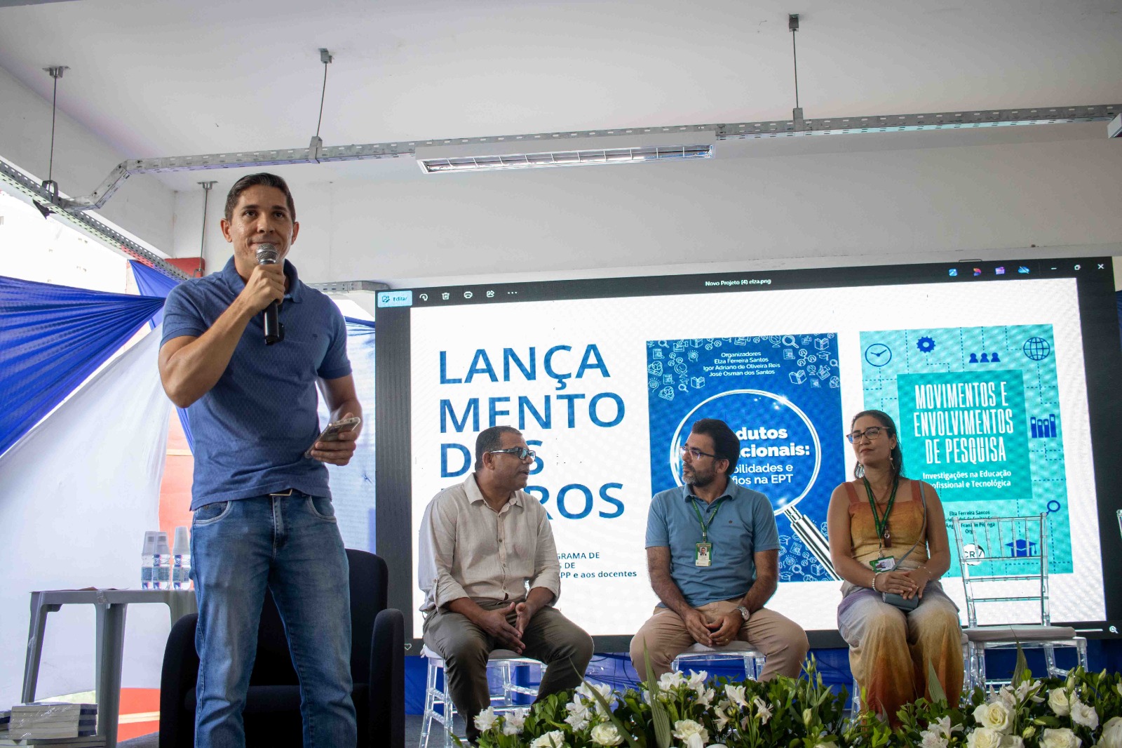 O evento contou também com o lançamento de livros do Programa de Pós-Graduação em Educação Profissional e Tecnológica (PROFEPT). Foram lançadas as obras “Movimentos e Envolvimentos de Pesquisa - Investigações na Educação Profissional e Tecnológica”, organizada pelos docentes Elza Ferreira Santos, Mário André de Freitas Farias e Ângelo Franklin Pitanga; e “Produtos Educacionais: Possibilidades e Desafios na EPT”, sob a organização dos professores Elza Ferreira Santos, Igor Adriano de Oliveira Reis e José Osman dos Santos.