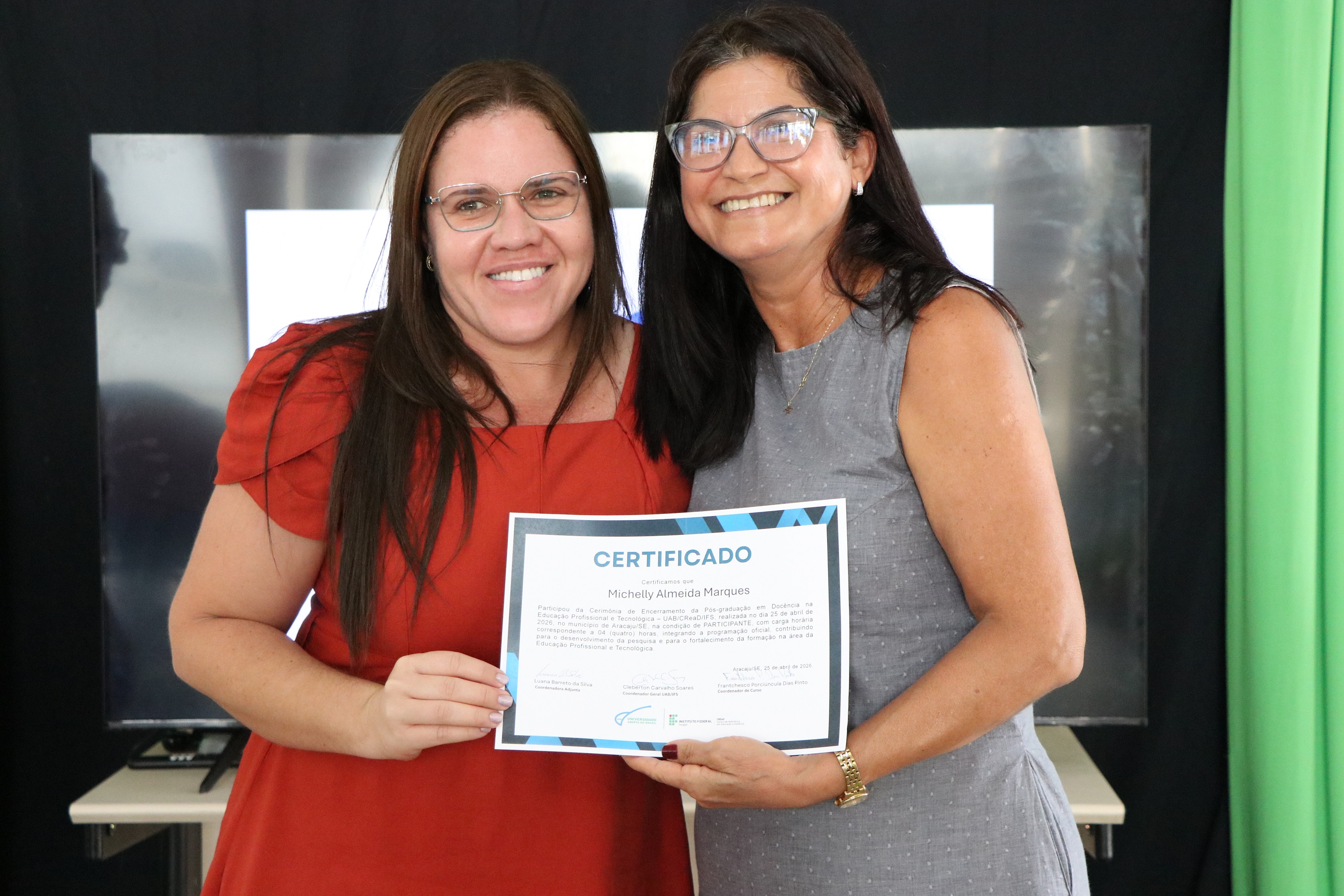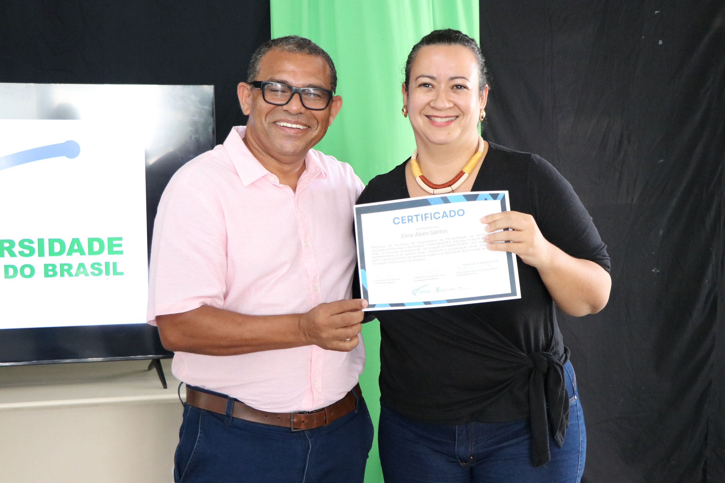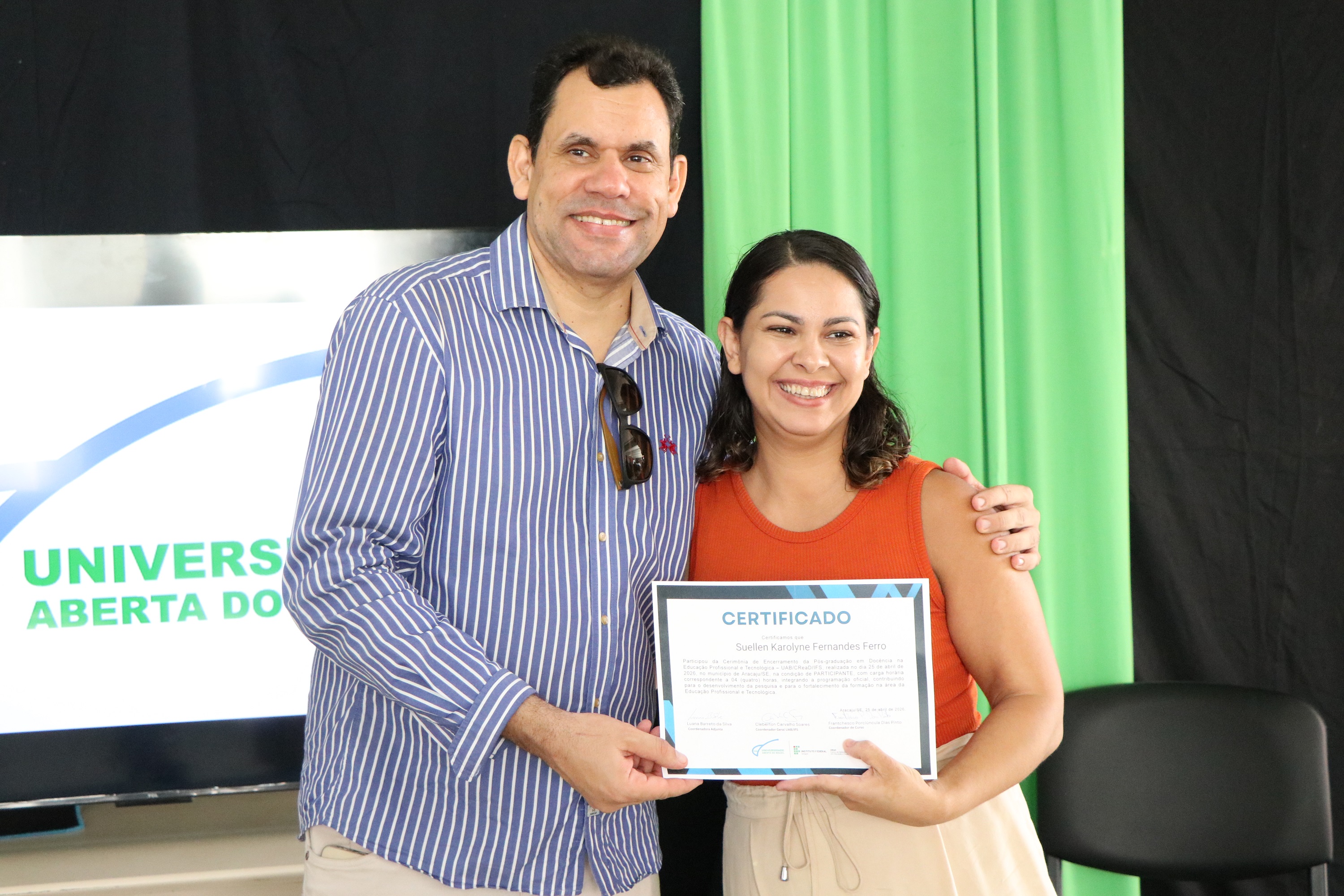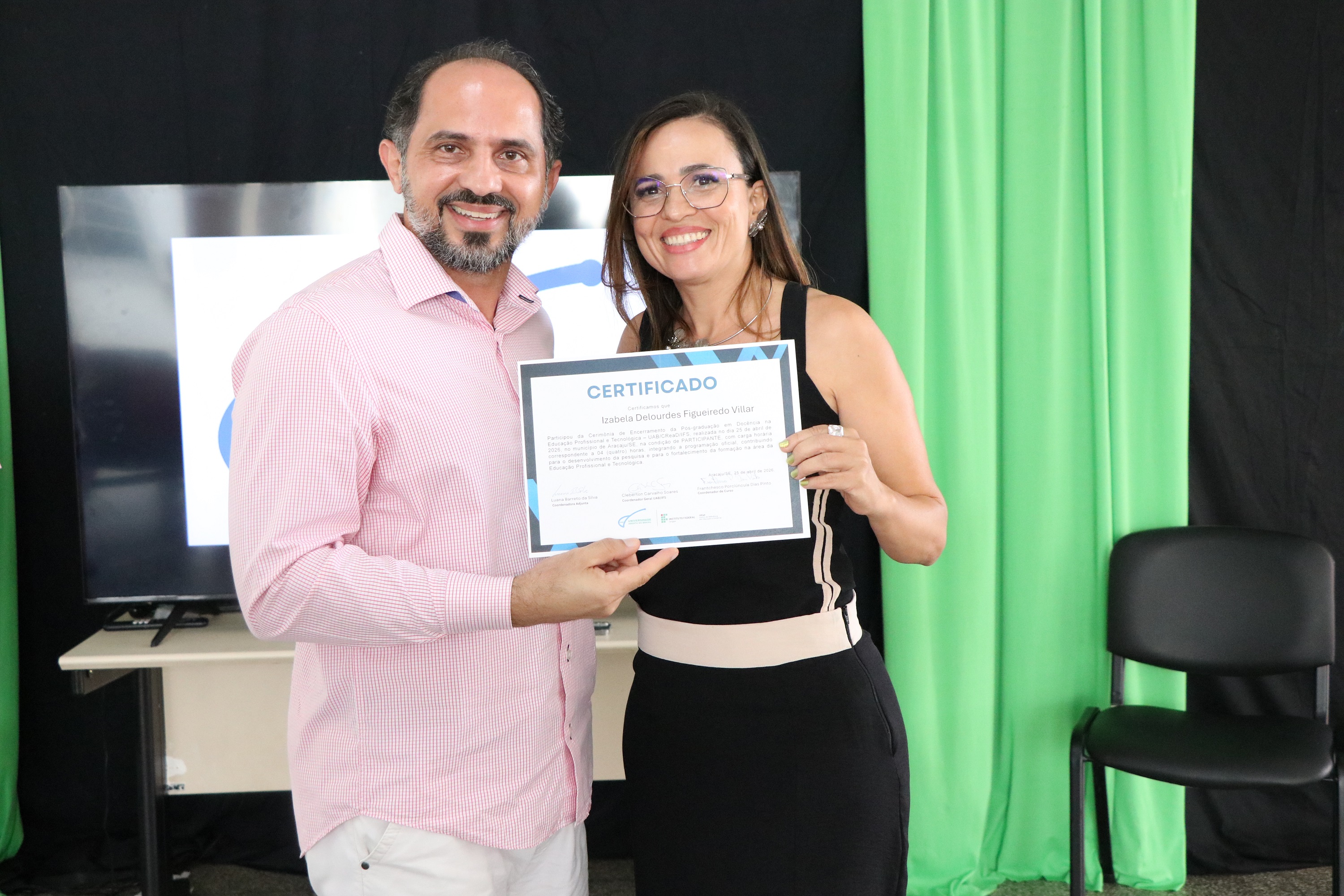 No total, 74 alunos concluíram o curso de especialização, que foi ofertado no período 2025-2026, em parceria com a Universidade Aberta do Brasil (UAB), pela primeira vez. De acordo com o professor Frantchesco Porciúncula, coordenador, o foco do curso é levar formação em Educação Profissional e Tecnológica para os profissionais que já atuam no IFS ou em outros espaços formais que ofertam cursos técnicos.