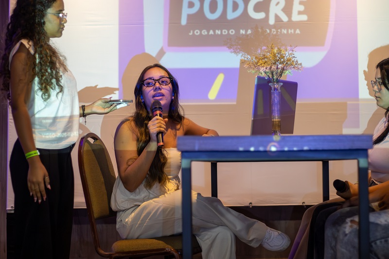 No estúdio improvisado no Delmar Hotel, na Orla de Atalaia, em Aracaju, a estudante da graduação em Gestão da Tecnologia da Informação, do Instituto Federal de Sergipe, Campus Propriá, Thaislane Vitória Leite Santana, viveu um papel diferente do habitual: no podcast criado para o encerramento da II Jornada de Assistência Estudantil (JAE), ela interpretou uma “especialista” no tema do assédio, respondendo às perguntas feitas por apresentadores e participantes, como se estivesse em uma entrevista ao vivo. A experiência exigiu transformar um assunto pesado em conversa objetiva e útil. “Quando decidimos fazer o podcast, surgiram muitas ideias, pois o assunto em si é muito complexo”, disse a aluna, ao explicar que o grupo escolheu não se prender à explicação do problema, mas às saídas possíveis. O resultado foi a principal marca do último dia do evento: apresentações culturais com teatro, poemas, cordel, música, tirinhas e podcasts e a finalização de um documento de propostas construído pelos estudantes para orientar ajustes na política de assistência estudantil do IFS.