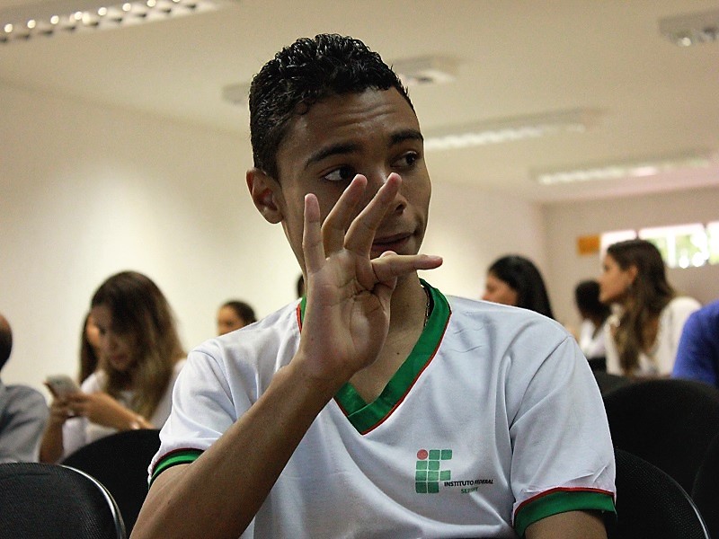 Como tantos outros jovens de sua idade, Deivid Torquato acorda cedo todos os dias para ir à escola. Morador da cidade de Estância, ele tem 19 anos e é aluno do curso integrado em Edificações do Instituto Federal de Sergipe (IFS). A rotina de Deivid é praticamente igual à de milhares de outros brasileiros, não fosse o fato de que, para se comunicar, ele conta com o auxílio de uma intérprete em Libras – a presença da profissional é essencial para que o aluno, que tem deficiência auditiva, consiga ter cada vez mais autonomia em seu processo de aprendizagem. É pensando em facilitar a vida de jovens como Deivid que o IFS vem criando ações de acessibilidade que ajudem na independência desses estudantes, sejam elas arquitetônicas, de atitude ou digitais. A mais recente ação do instituto neste sentido foi a realização do I Encontro de Acessibilidade Digital, realizado no Auditório do Pronatec, na última segunda-feira, 17.