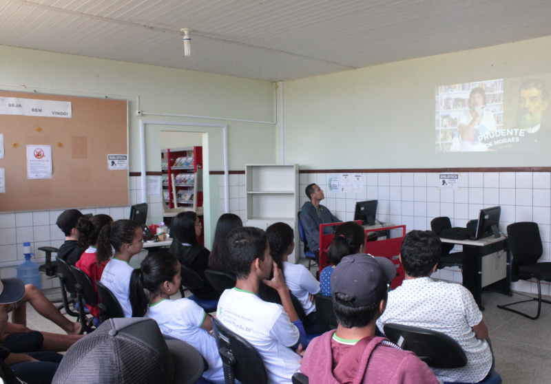 Na última edição do Bibliocine, que aconteceu em agosto de 2019, os alunos assistiram a dois documentários do jornalista Eduardo Bueno. Um filme sobre Virgulino Ferreira da Silva, o famoso cangaceiro Lampião e outro sobre a Guerra de Canudos. O Bibliotecário, explica que ao final de cada exibição uma pessoa é convidada para falar sobre o tema provocando debate entre os alunos. Sobre a efetividade da ação o bibliotecário conta que a seleção dos temas dos filmes exibidos dialoga com o acervo da Biblioteca do Campus. “ No caso dos documentários escolhidos na última exibição foi muito interessante, pois ao final o jornalista sempre diz que o espectador deve ler para saber mais e apresenta a bibliografia que ele utilizou. Eu sempre digo aos alunos que alguns desses livros e outros sobre esse tema nós temos na biblioteca e na mesma hora os alunos foram pegar”, comenta.