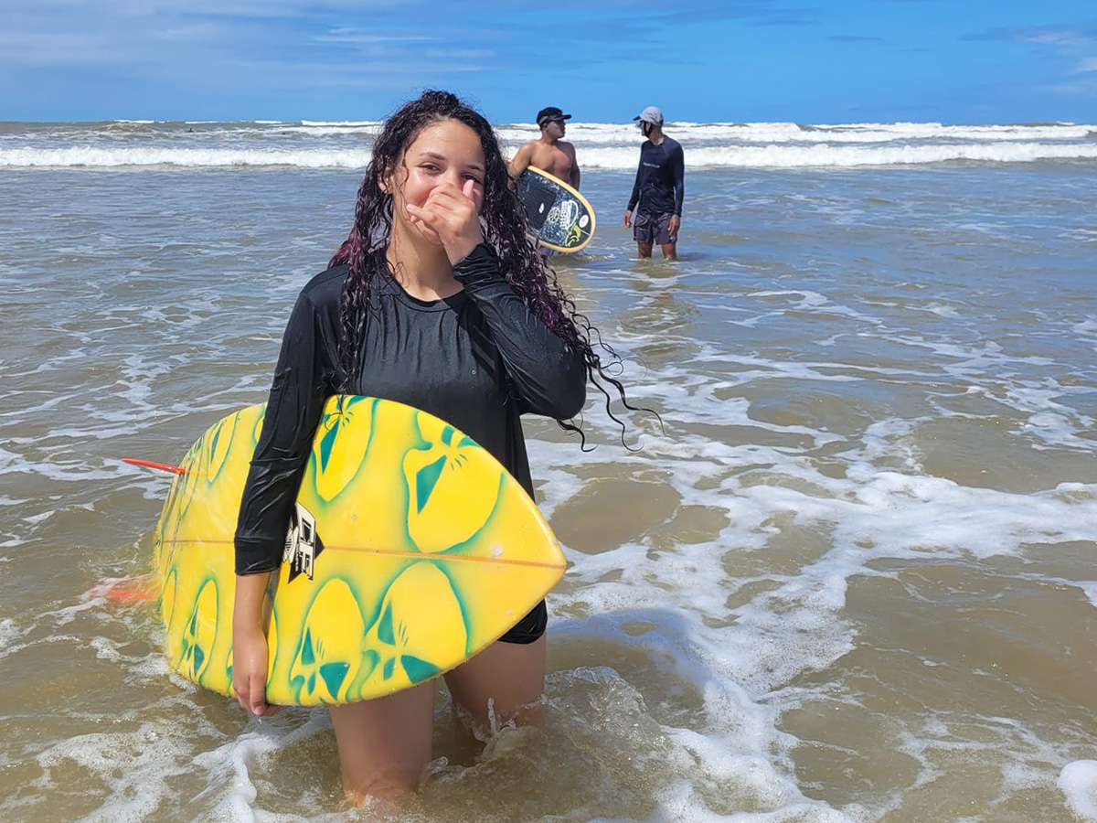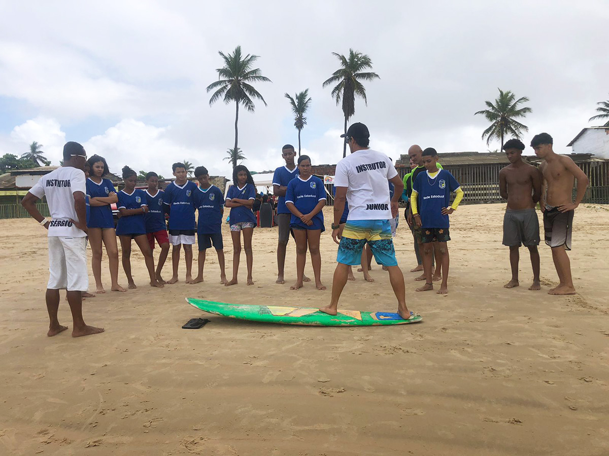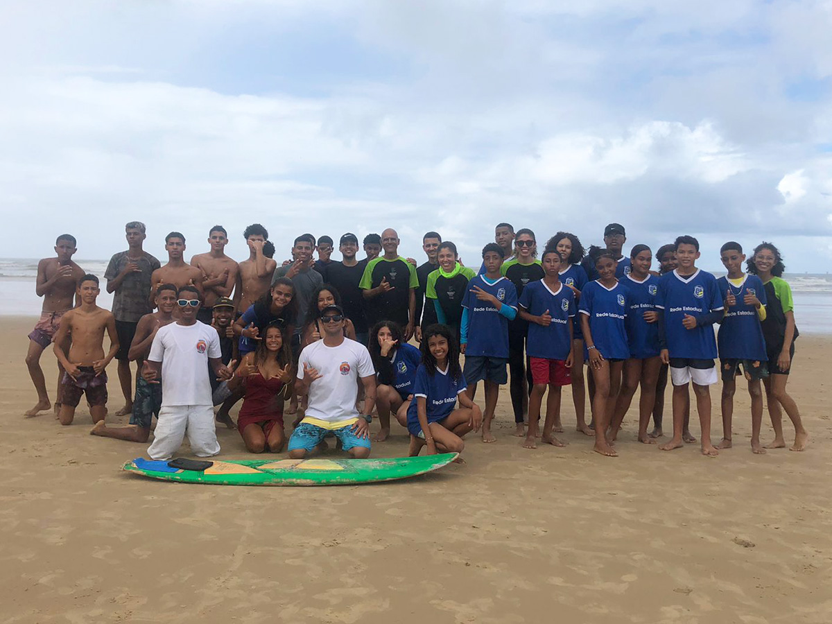 Antes de mergulharem nas ondas, os alunos do 8º e 9º ano do ensino fundamental vivenciaram uma atividade diferente, em que aprenderam vários conceitos