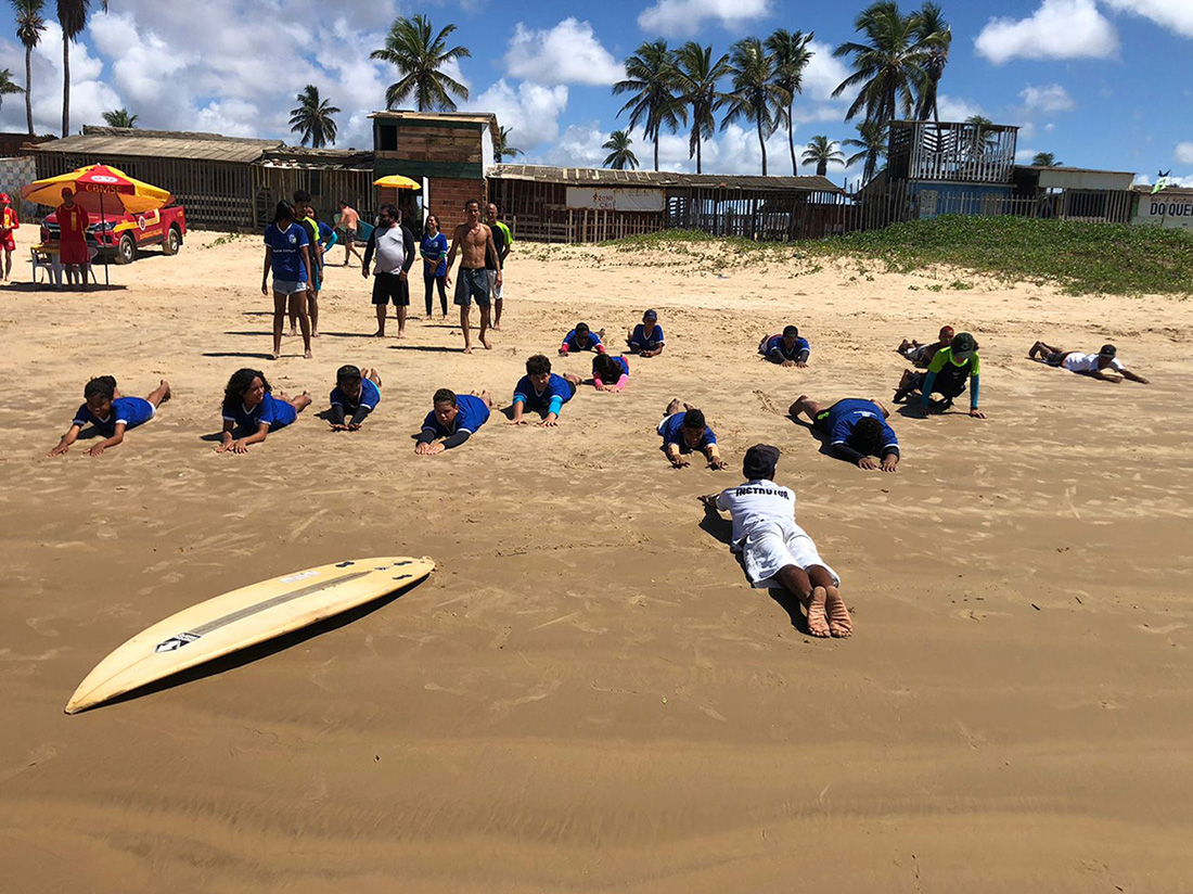 Com o apoio do Corpo de Bombeiros Militar de Sergipe, por meio de dois guarda-vidas, e de instrutores voluntários de surf, membros do Projeto Onda do Bem, os acadêmicos Ana Sara de Jesus Pinheiro, Andréa Carla Guimarães dos Santos, Andrezza Carla Guimarães dos Santos e Jailson Santos Alexandre, realizaram uma atividade na Praia da Costa, situada na Barra dos Coqueiros, distante 9km da capital. A ação faz parte do projeto voluntário de extensão “Surfematemática”: o IFS na comunidade”, coordenado pelo professor mestre Davy Christian Souza Cardoso, da coordenadoria de Licenciatura em Matemática (Colima) do campus Aracaju.
