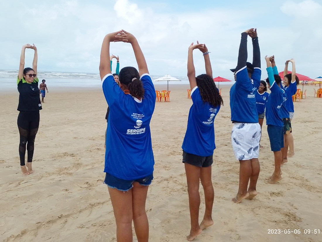 Esta é a segunda atividade do projeto. A primeira ação externa aconteceu em 15 de abril deste ano, também na Praia da Costa, com o apoio do Corpo de Bombeiros Militar de Sergipe e do Projeto Onda do Bem , e a participação dos discentes do Curso de Licenciatura em Matemática do Campus Aracaju do IFS. Para participar, não necessita de inscrição, sendo aberta à comunidade, porém, nas duas primeiras práticas do projeto, dias 15 de abril e 6 de maio, os estudantes foram selecionados por sorteio, realizado pela professora do Colégio Estadual João Batista Nascimento. Andréa Carla Guimarães dos Santos.