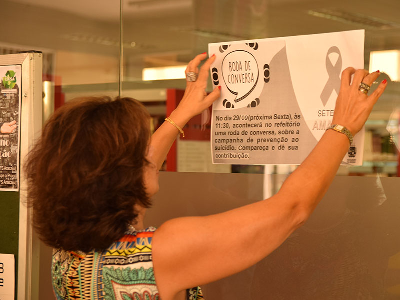 No dia 29, ao meio dia, a CAE promoveu uma roda de conversa no espaço de convivência Leyda Regis, ambiente onde os estudantes costumam se reunir para comer , conversar e se divertir. Por mais de uma hora, aconteceu um amplo debate entre alunos, servidores e colaboradores a respeito do suicídio. As psicólogas Carla Storino e Karen Gomes Leite e os estagiários esclareceram dúvidas, falaram de mitos e verdades, orientaram como buscar atendimento e convocaram a comunidade acadêmica a apoiar a quem precisa de ajuda.