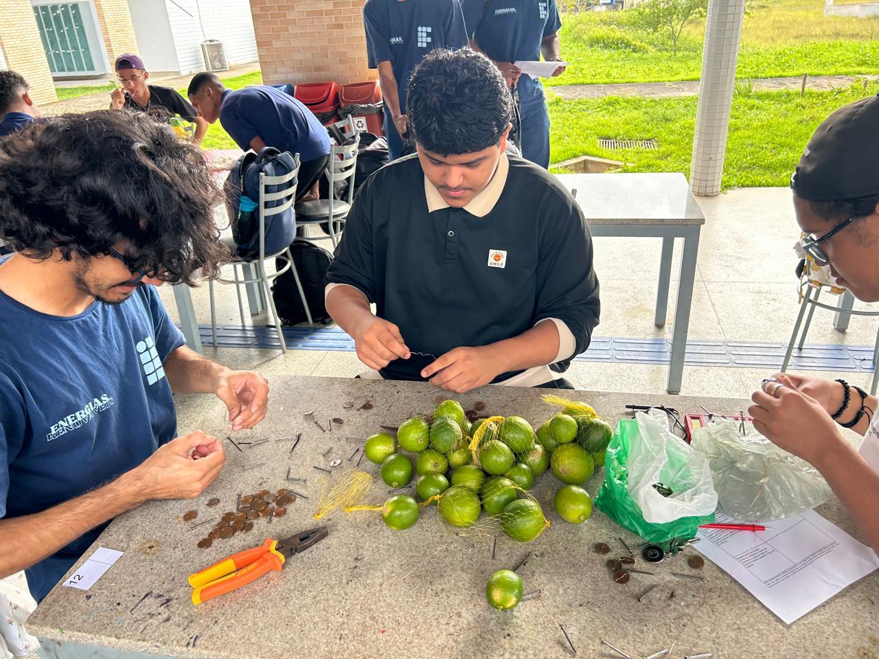 Os estudantes construíram pilhas utilizando limões, laranjas e maçãs como eletrolitos e diversos materiais condutores como eletrodos, a exemplo de cobre e zinco. A construção foi acompanhada pela medição da corrente elétrica gerada e pela análise da eficiência dos diferentes tipos de frutas. As equipes foram incentivadas a experimentar e ajustar os protótipos para melhorar o desempenho, a partir da análise de fatores como a combinação de materiais e a condição das frutas.