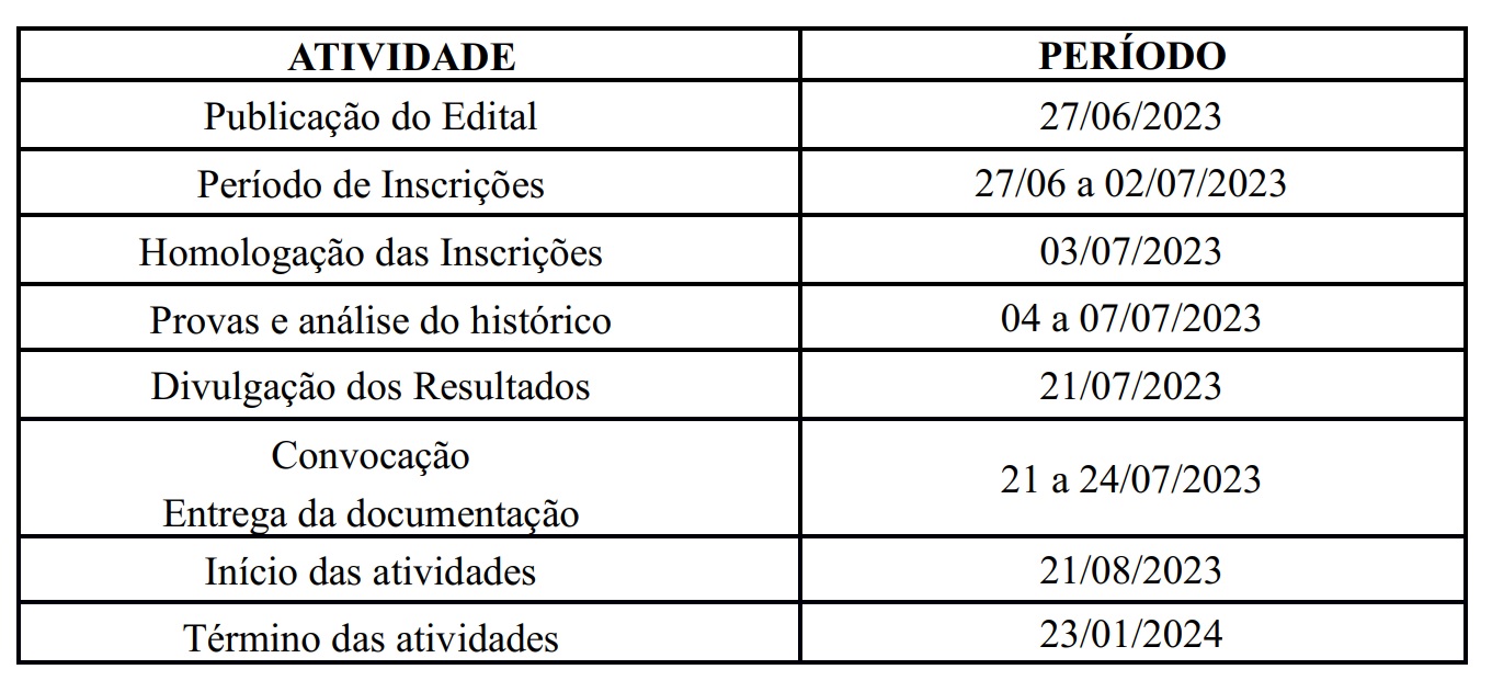 A seleção será realizada por meio de prova teórica ou prática ou teórico-prática específica para a disciplina escolhida. A prova é de caráter eliminatório. Serão considerados aprovados no processo seletivo apenas os candidatos que obtiverem nota igual ou superior a 6 pontos.