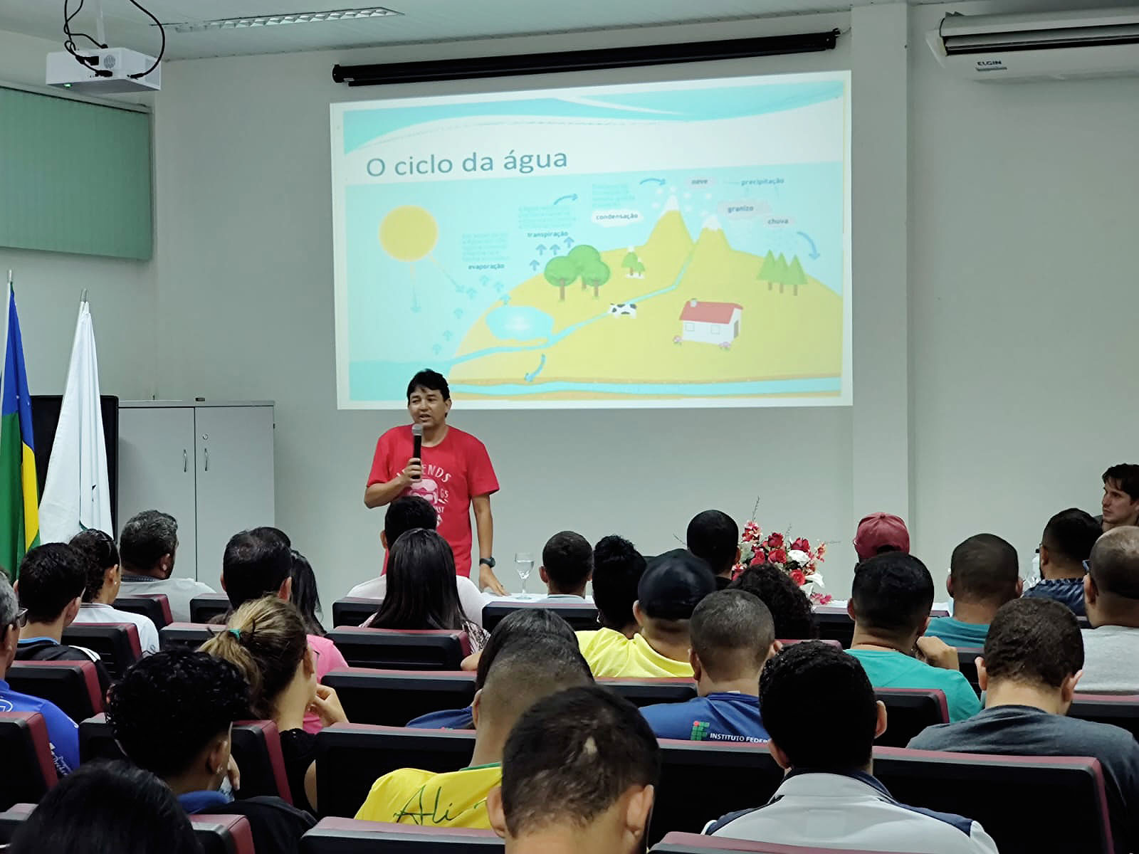 Pela manhã, alunos dos cursos técnicos em Agronegócio e em Manutenção e Suporte em Informática participaram de uma discussão interdisciplinar com os professores Aldemir Smith, Cleidinilson Cunha e Wendel Menezes. Eles abordaram sobre a importância de refletir sobre a democratização do acesso ao uso da água, bem como nas formas mais racionais de sua utilização, contextualizadas com as disciplinas de Educação Física, Geografia e Química.