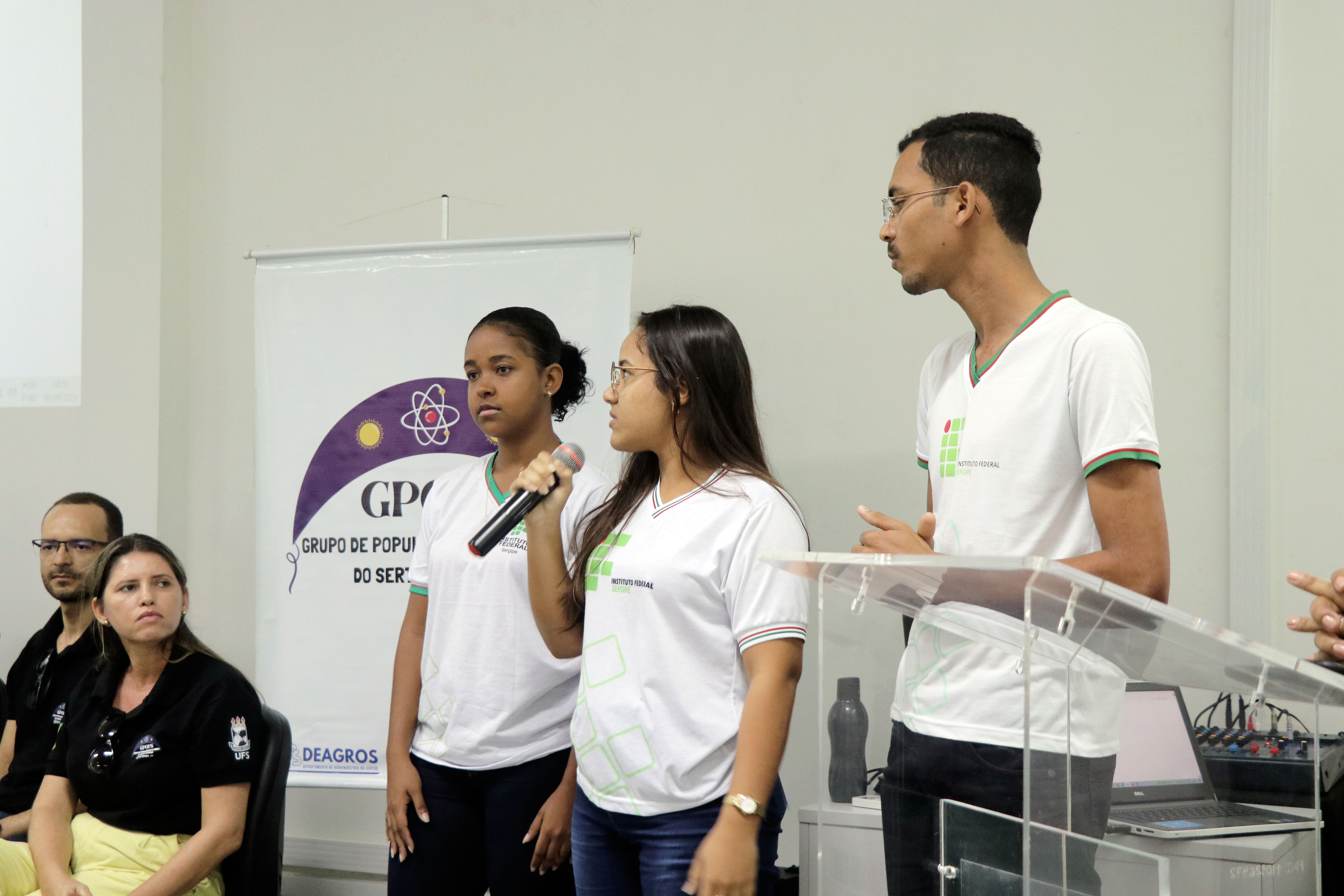 O evento contou com as participações do diretor da UFS/Campus Sertão, prof. Maycon Fagundes, dos integrantes do Grupo de Popularização da Ciência de Sergipe - GPOSPS, prof. Danilo Santos e prof. Bráulio Rocha, da pesquisadora do CNPQ, Milena Ferreira e do diretor do campus Itabaiana, prof. Jairton Mendonça. Durante os seus discursos, os presentes fizeram questão de enfatizar a importância de popularizar a ciência e de trazer o estudante de Sergipe para a pesquisa.
