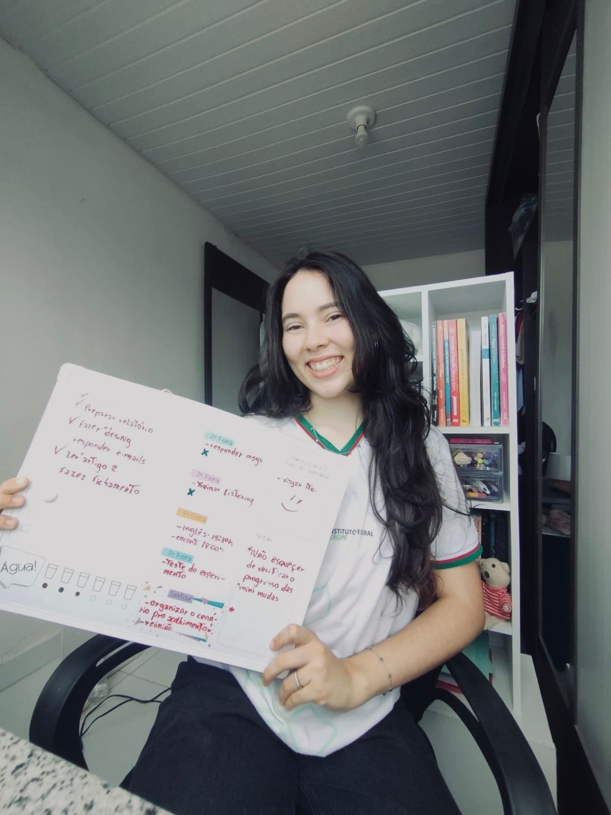 EstherEsther conta que passou a usar agenda, organizar arquivos em plataformas digitais e dividir tarefas em quadros semanais, mas a principal mudança aconteceu na forma de se relacionar com a vida estudantil. Ela diz que antes estudava para alcançar notas; hoje, estuda para aplicar e repassar o conhecimento, e essa alteração de horizonte tem peso decisivo na construção do pertencimento. “Antes, eu era uma aluna nota dez focada em provas, mas hoje estudo para adquirir conhecimento e aplicá-lo em outras áreas”, resume. Quando afirma que se sente protagonista da própria história, especialmente como mulher no meio científico, Esther revela uma forma de permanência que ultrapassa o comparecimento às aulas e alcança a construção de projeto acadêmico e futuro profissional.