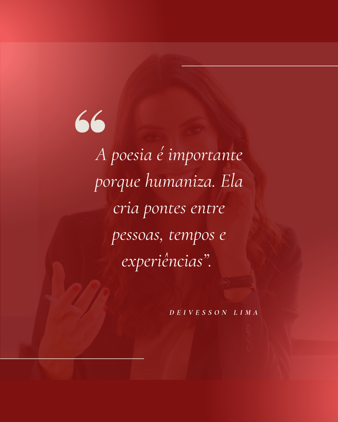 Sem rodeios, Deivesson Lima diz: “A poesia é importante porque humaniza. Ela cria pontes entre pessoas, tempos e experiências. Em uma realidade marcada por desigualdades e conflitos, a poesia permanece como um gesto de escuta, memória e esperança. Para mim, a poesia existe porque é linguagem viva, porque é possibilidade de dizer o indizível e porque, de alguma forma, ela sempre encontra uma maneira de transformar silêncio em voz”, afirmou.
