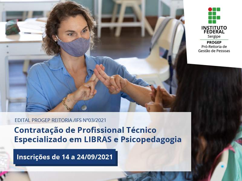 No período de 14 a 24 de setembro, o Instituto Federal de Sergipe (IFS) estará com inscrições abertas para o Processo Seletivo Simplificado destinado à contratação, por tempo determinado de profissional técnico especializado de nível superior, nas áreas de Libras (24 vagas) e de Psicopedagogia (11 vagas). Os regimes de trabalho serão de 40 horas semanais. Para concorrer a uma das vagas, os interessados devem ter no mínimo um ano de experiência na área, além de outros requisitos estabelecidos no edital.