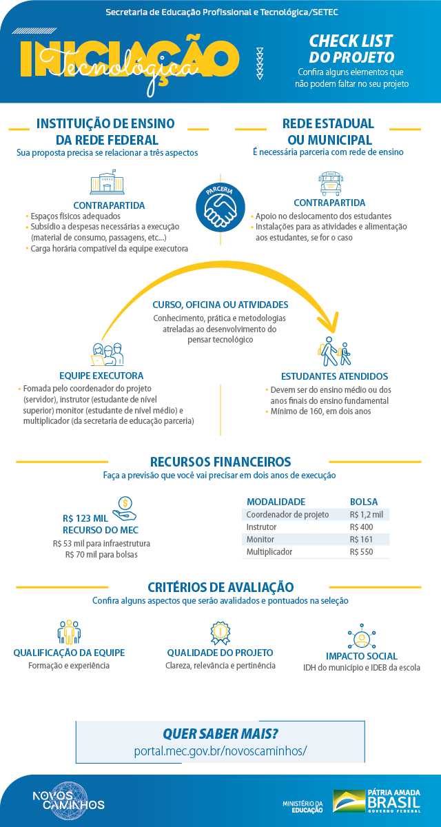 Observação: 10/05/2020 - Até a data de hoje, a SETEC/MEC ainda não publicou o edital do Programa Novos Caminhos, por esse motivo, prorrogamos o processo de seleção interna. |