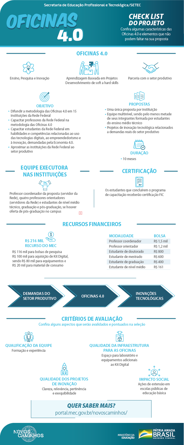 Linha - APOIO À IMPLEMENTAÇÃO DAS OFICINAS 4.0 14/07/2020 - Edital Nacional 14/07/2020 - Anexo III 14/07/2020 - Anexo IV 14/07/2020 - Anexo V 14/07/2020 - Informações Gerais