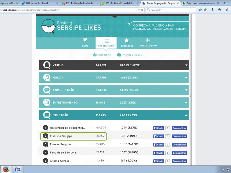 Página do IFS no Facebook é 2ª mais popular no segmento da educação